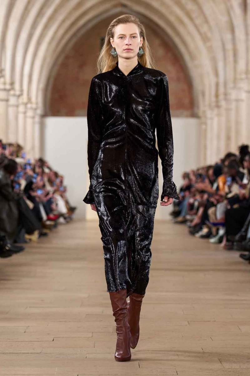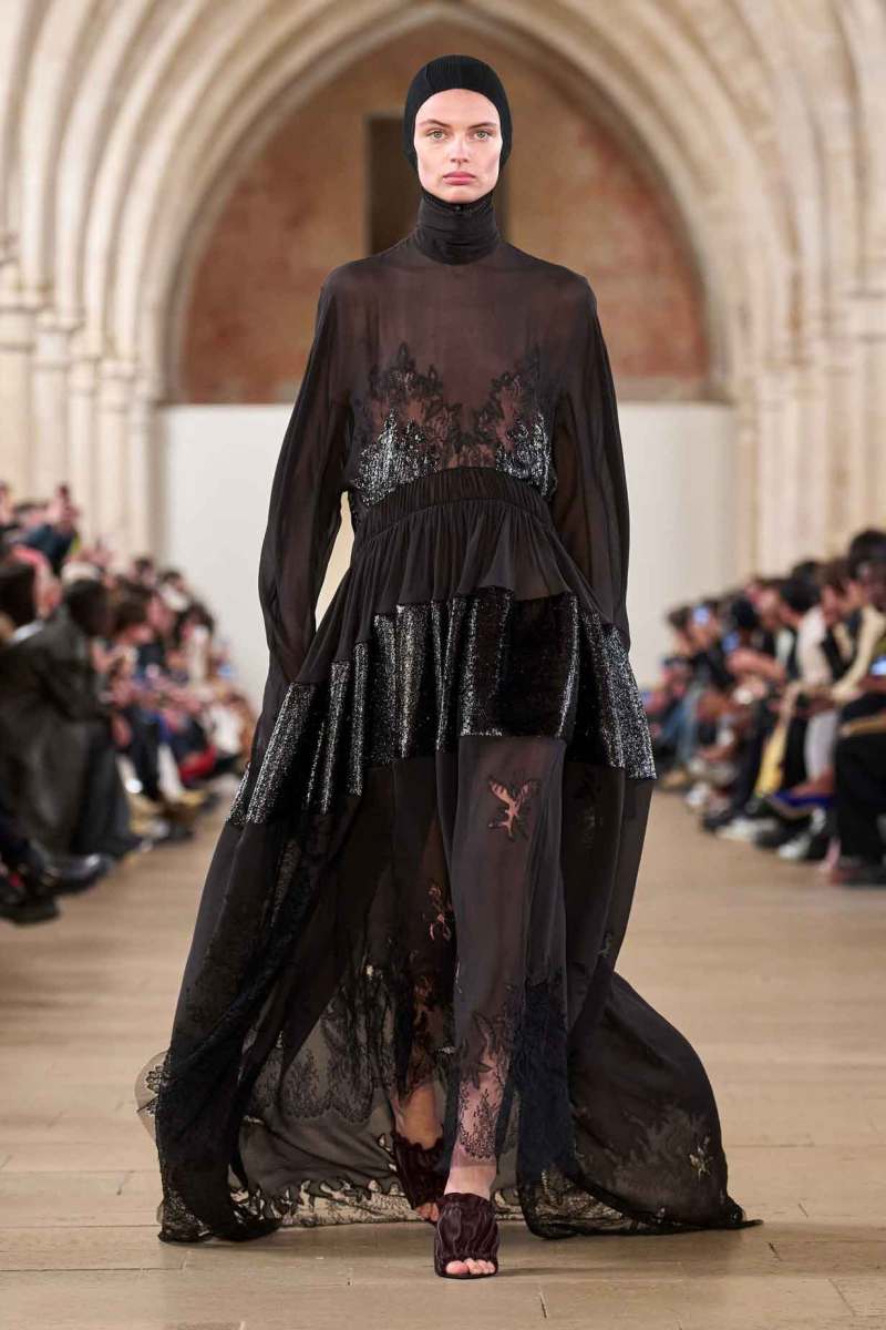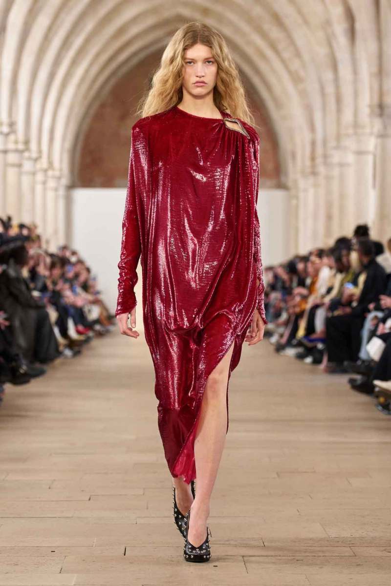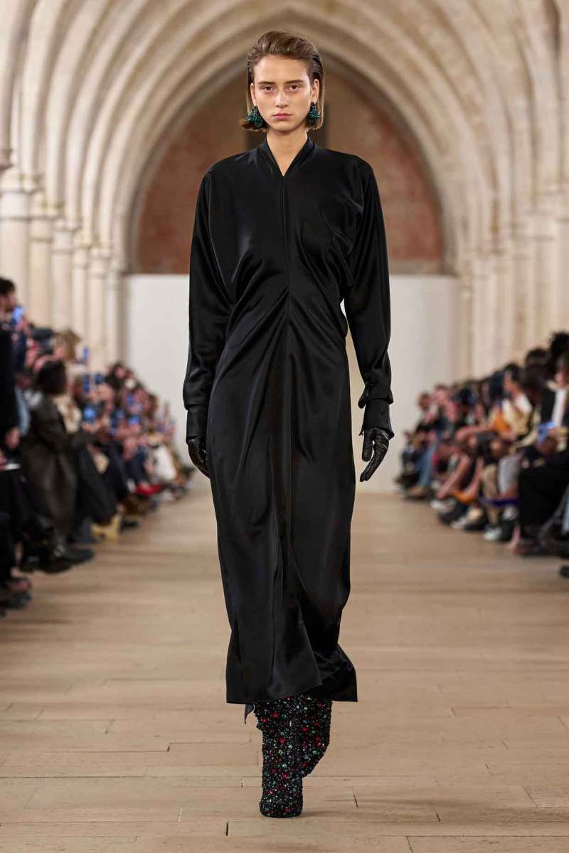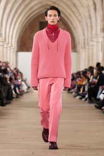 Per la PFW Lanvin porta il suo show nel duecentesco Collège des Bernardins, che conferisce alla sfilata un’aura medioevale accentuata dal suggestivo colonnato gotico e dalle volte ogivali. È la prima volta che l’ex collegio cistercense, oggi centro teologico, si apre al mondo della moda. Lo spettacolo inizia sulle note del soundtrack di Thomas Newman per American Beauty, e i modelli e le modelle ci mostrano una collezione varia ma non confusionaria in cui si alternano capi da giorno, da sera, alcuni più eleganti altri più stravaganti.