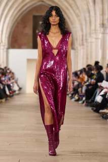 Una collezione varia e glamour ma non eccedente: queste le caratteristiche delle creazioni di Bruno Sialelli. Particolarmente interessanti risultano essere i dettagli, tra cui vediamo borchie che mimano pois, devorè, velluti lustri e ricami di cristalli. Le silhouette sono morbide ma definite, e gli abiti aderiscono al corpo. Glamour e seducenti gli abiti da cocktail rivestiti di paillettes e perline di vetro, mentre più formali risultano essere i blazer femminili a doppio strato e le giacche e i cappotti dalle spalle affilate. Da sottolineare anche l’utilizzo della pelle goffrata di coccodrillo sia per capi maschili che femminili. Meritati gli applausi finali.