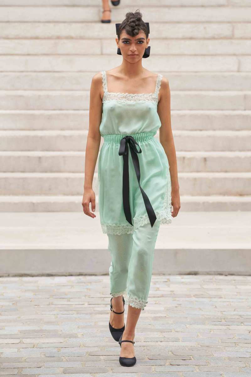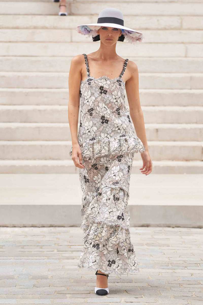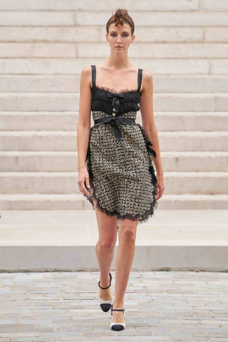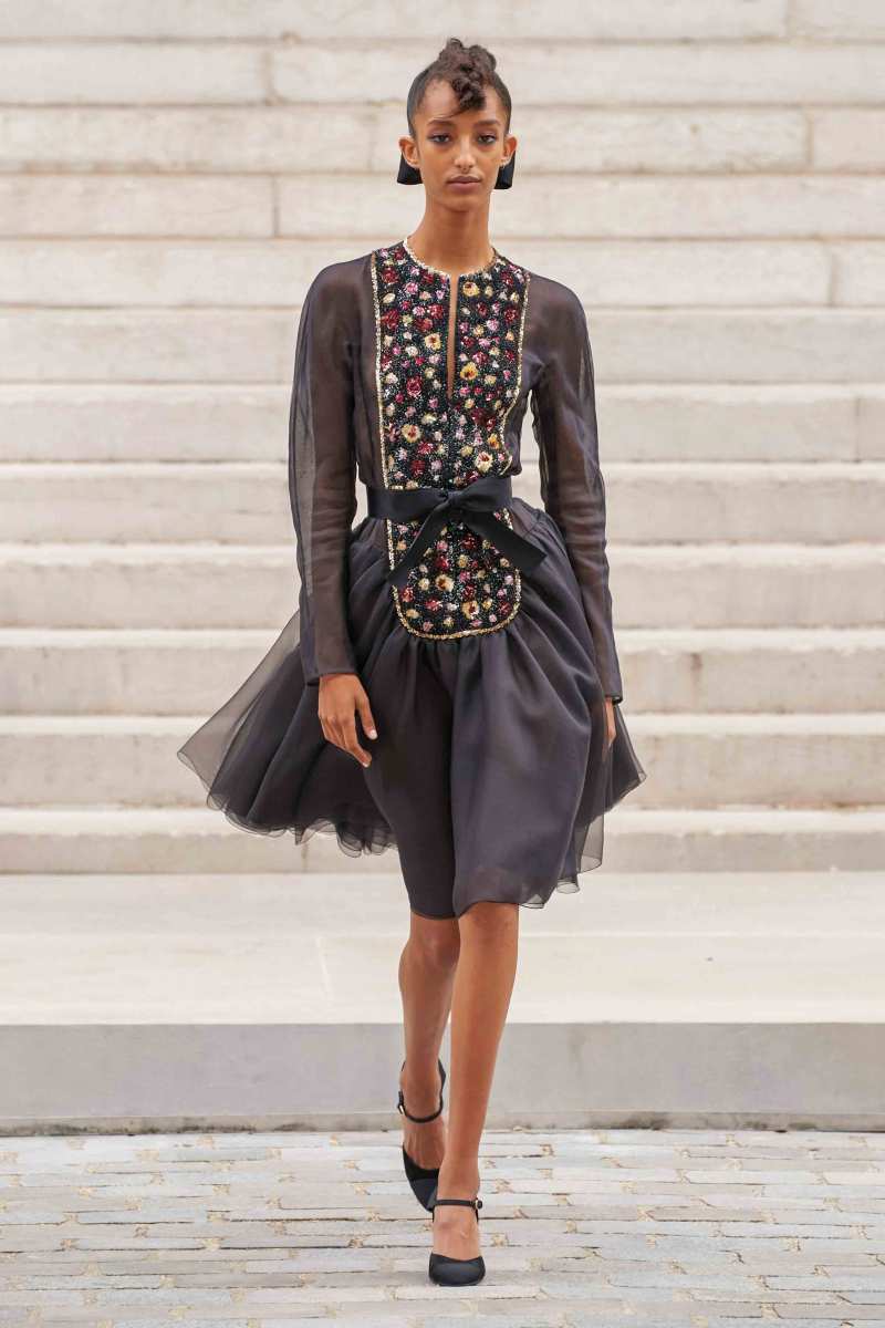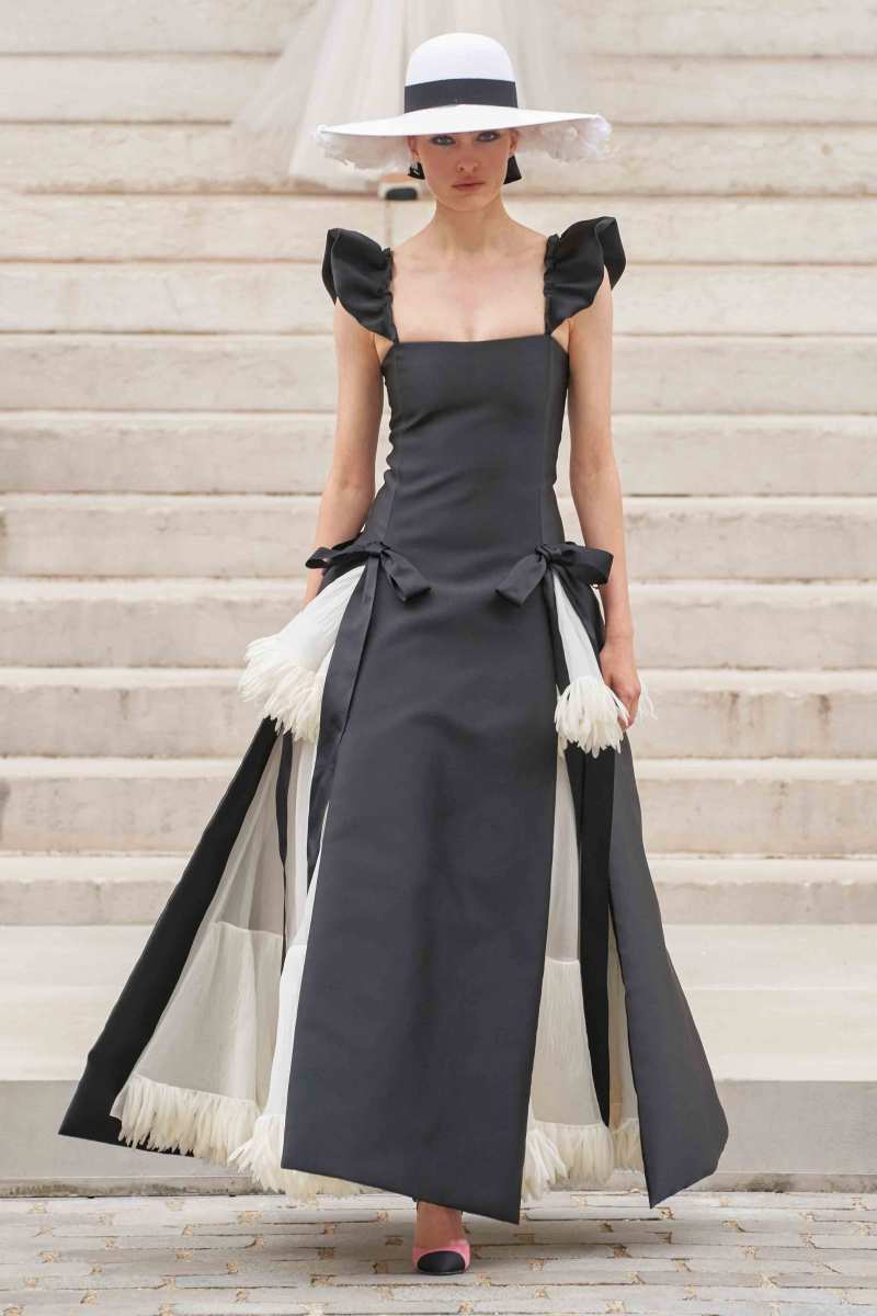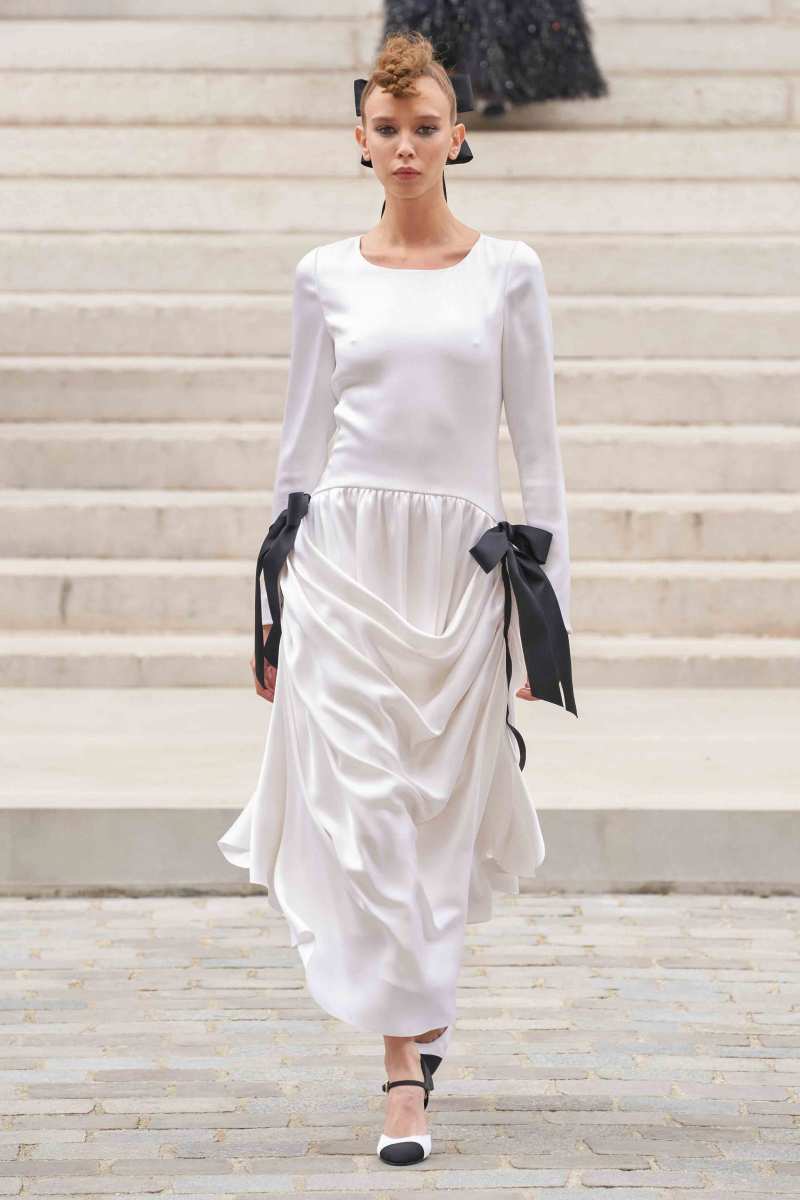 “Sono partita dalle opere di Berthe Morisot, Marie Laurencin e Edouard Manet. Ci sono abiti di ispirazione impressionista, gonne che sembrano quadri ed un lungo abito di raso bianco punteggiato di fiocchi neri come quello di Morisot”, ha confidato Virginie Viard, direttore creativo di Chanel.