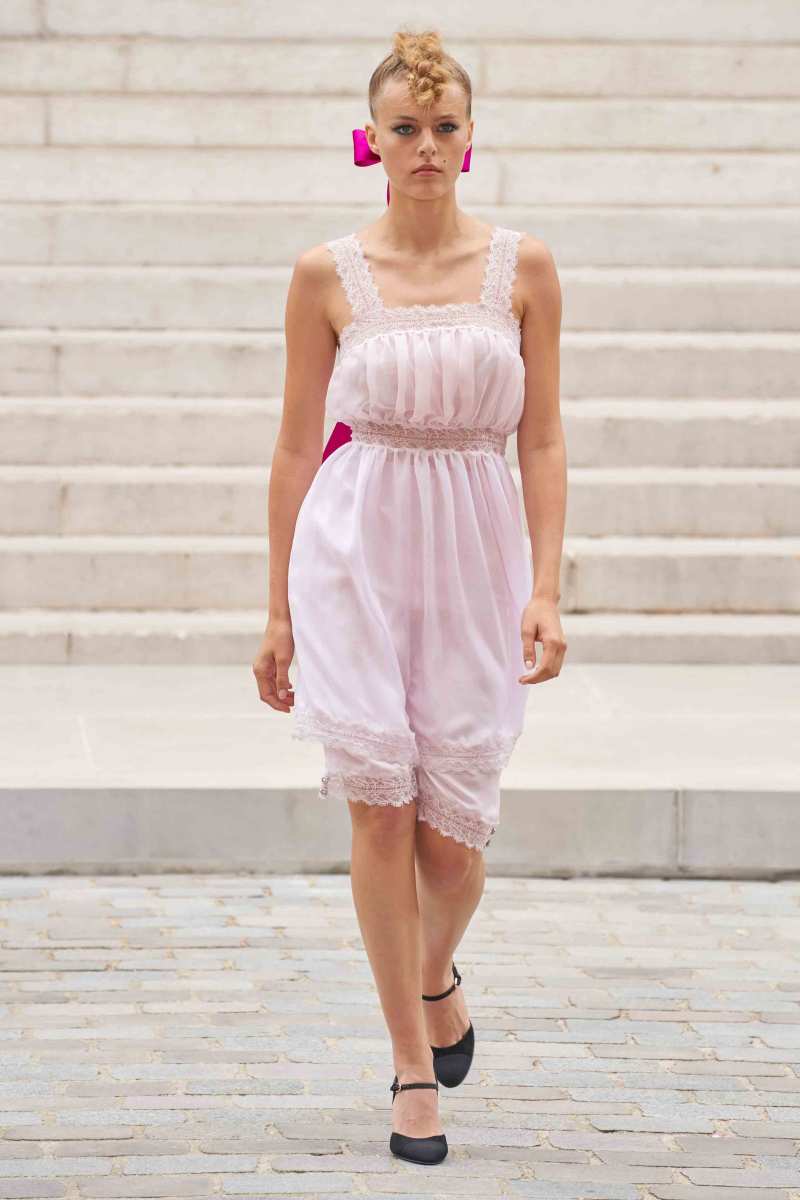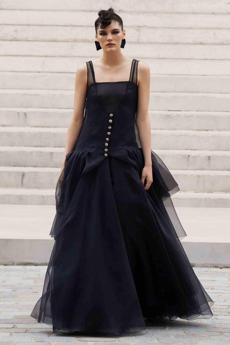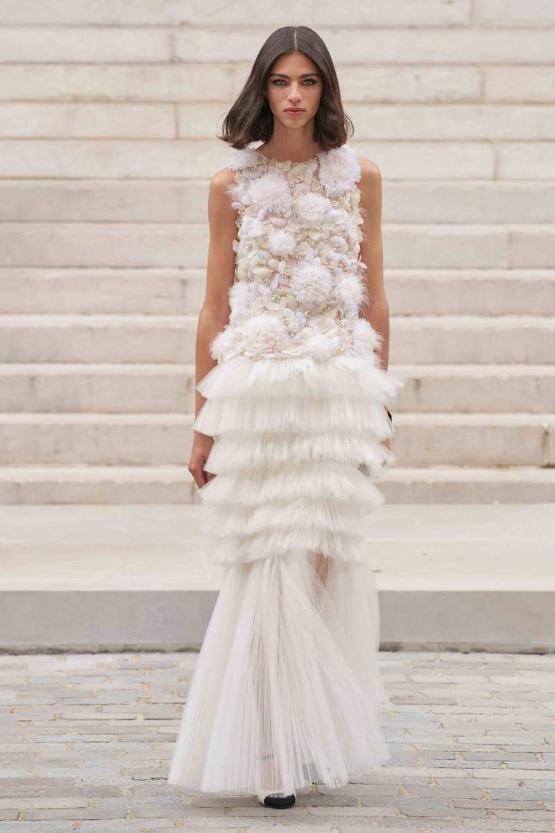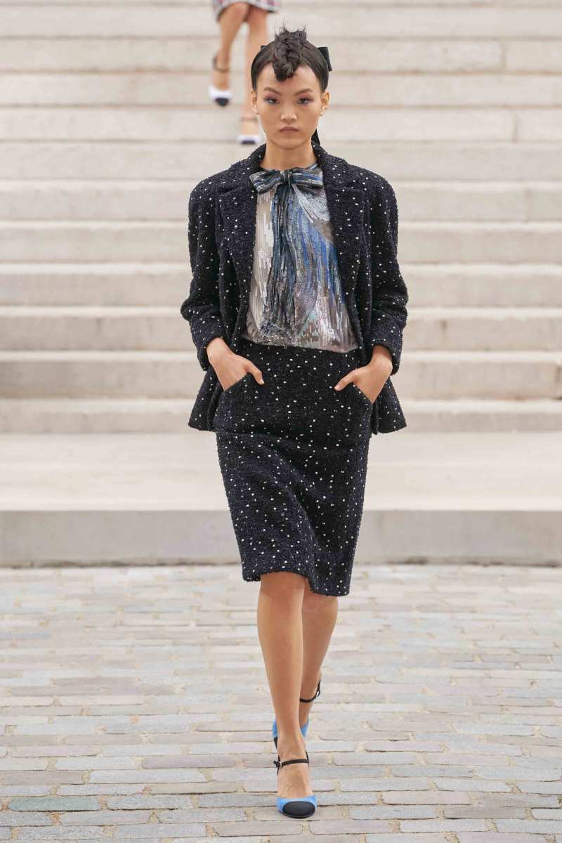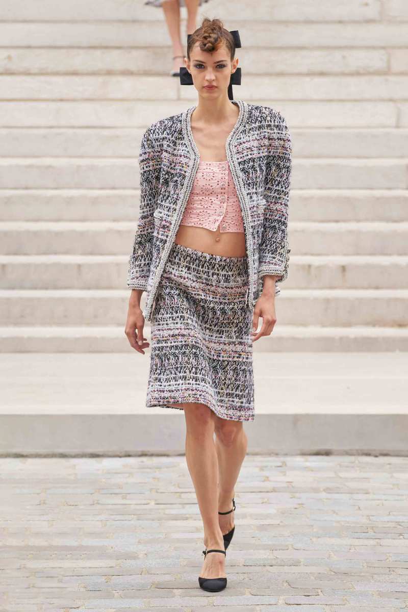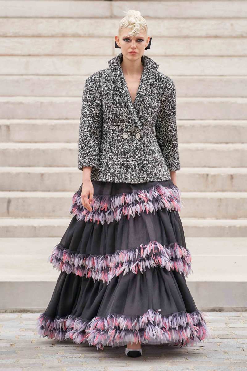 “Sono partita dalle opere di Berthe Morisot, Marie Laurencin e Edouard Manet. Ci sono abiti di ispirazione impressionista, gonne che sembrano quadri ed un lungo abito di raso bianco punteggiato di fiocchi neri come quello di Morisot”, ha confidato Virginie Viard, direttore creativo di Chanel.