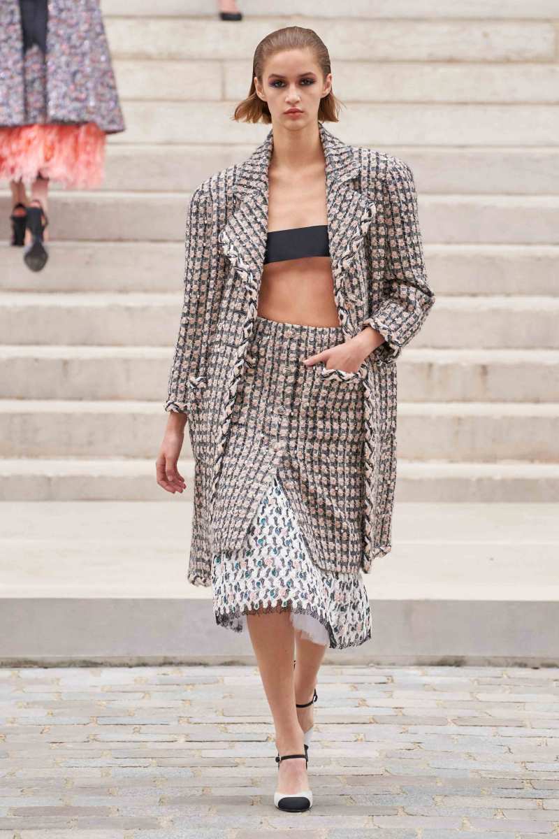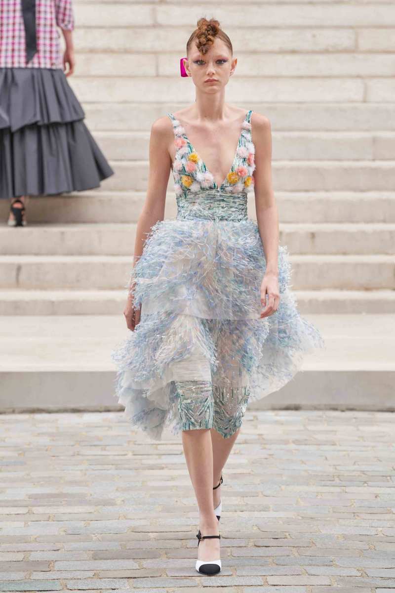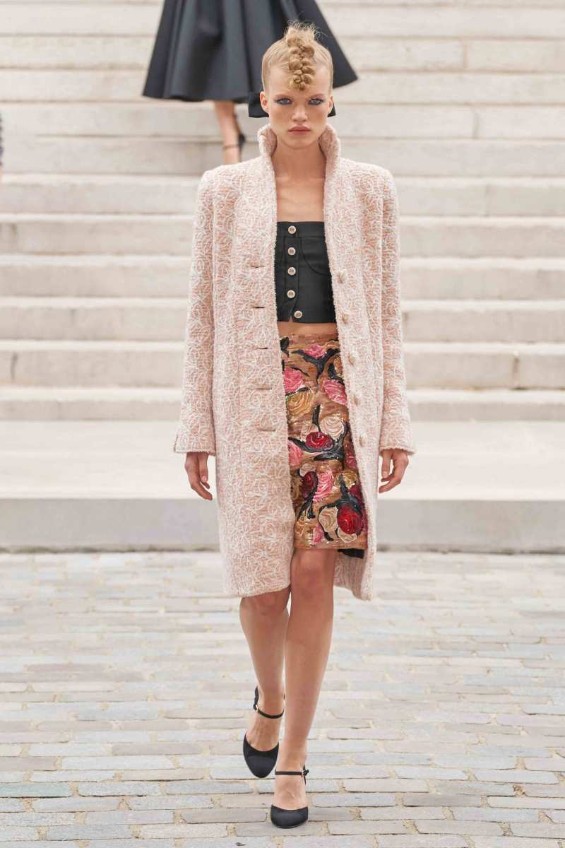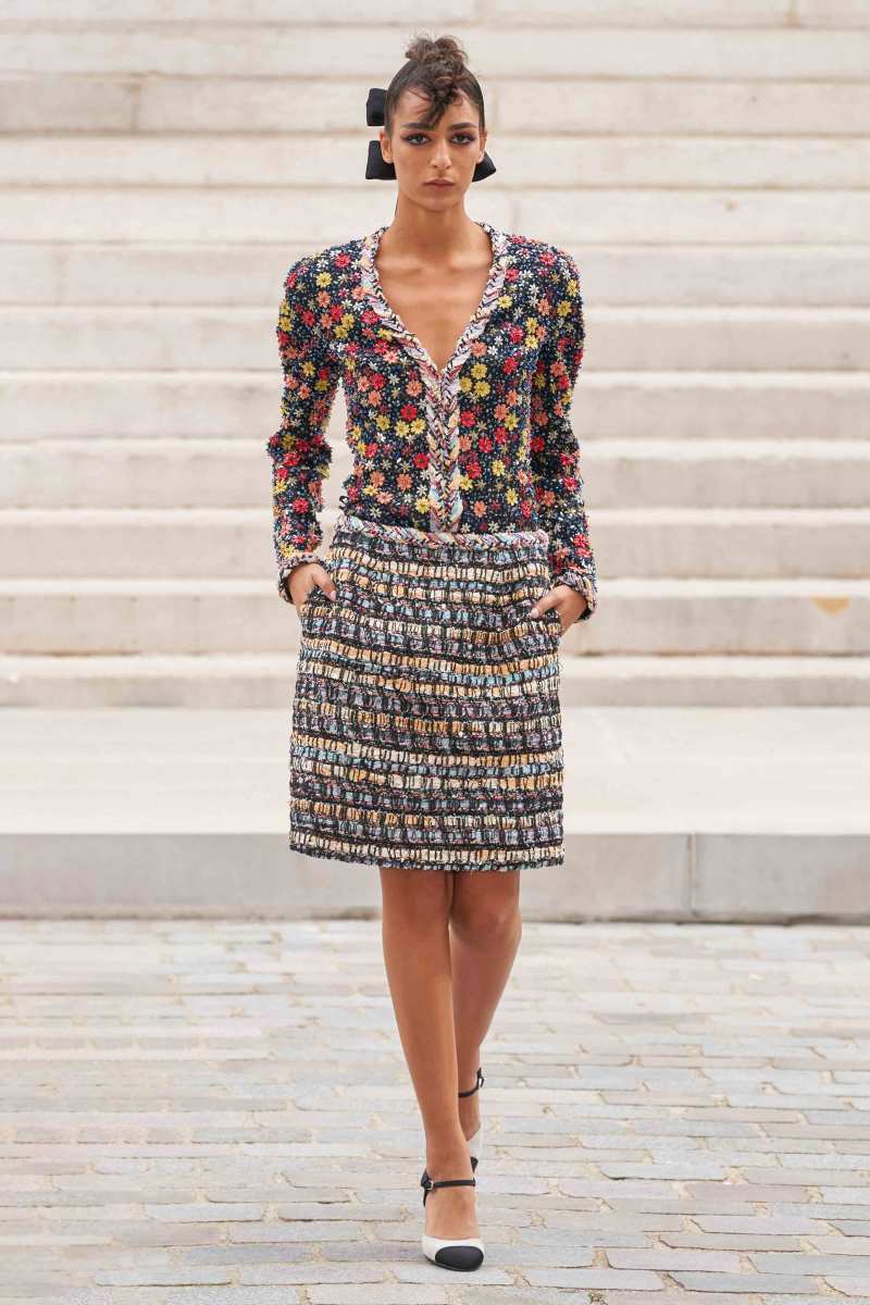 Protagonisti in passerella, gli iconici tailleur in tweed sono impreziositi da ricami e applicazioni, mentre gli abiti sbocciano come i fiori dei giardini inglesi. È proprio Viard a confidare di aver volutamente unito il mondo della moda francese a quello inglese, dando vita a un perfetto equilibrio. I colori sembrano fondersi, mentre lo sguardo è attento a cogliere anche il dettaglio più nascosto, studiandone i particolari e assaporandone le suggestioni.