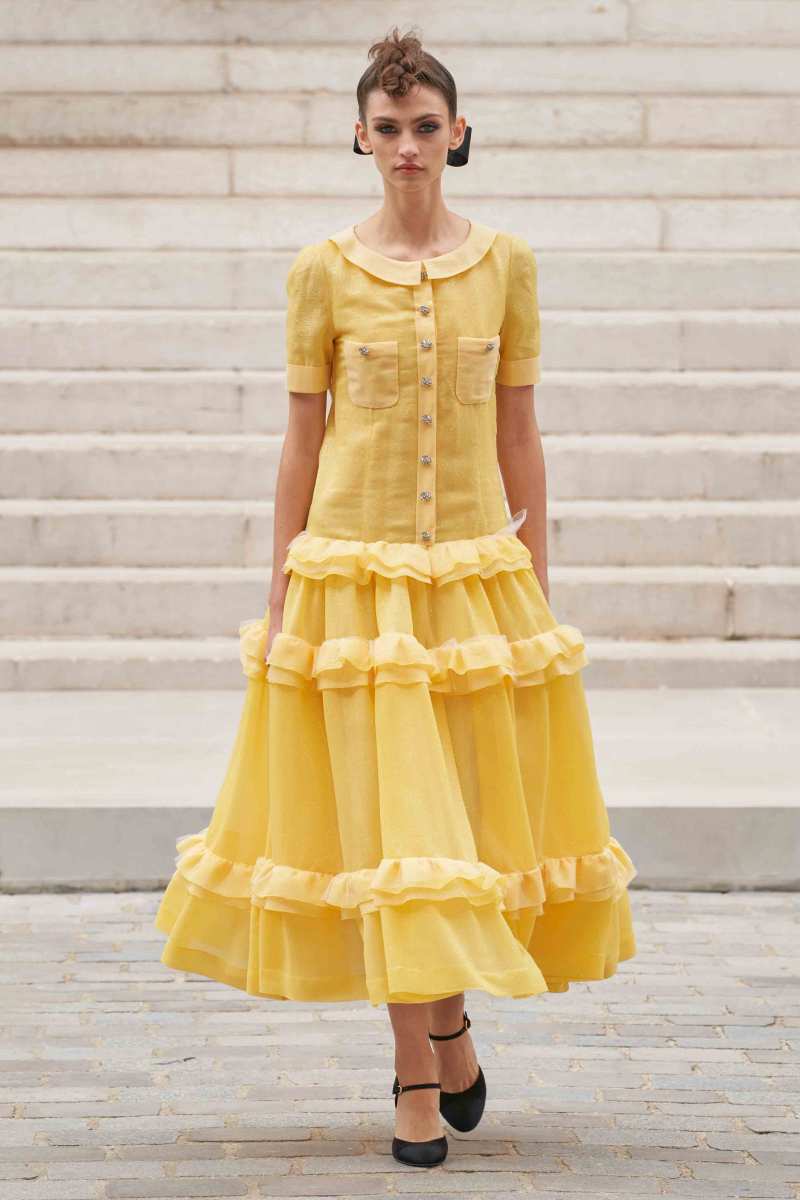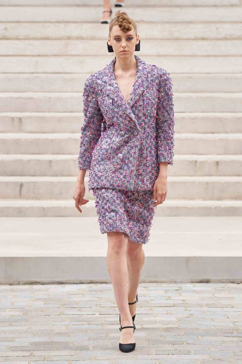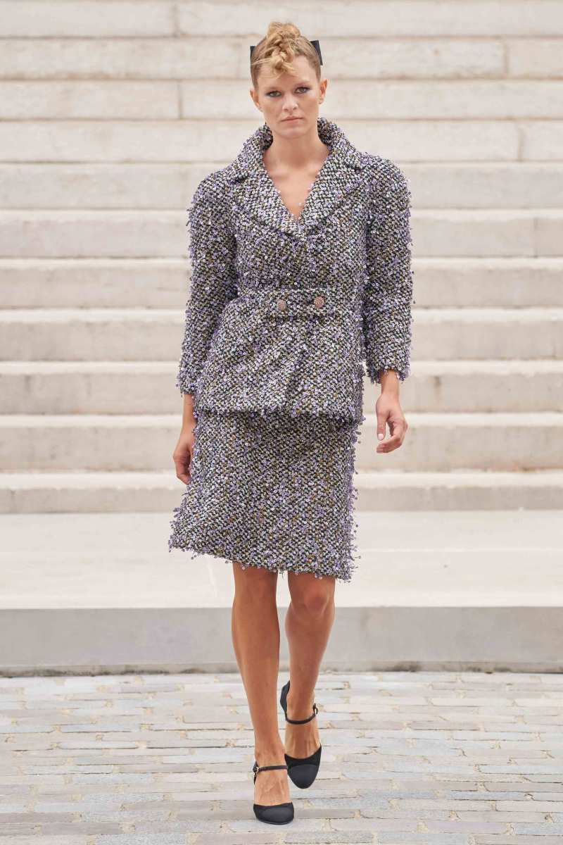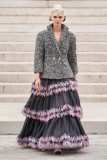 Protagonisti in passerella, gli iconici tailleur in tweed sono impreziositi da ricami e applicazioni, mentre gli abiti sbocciano come i fiori dei giardini inglesi. È proprio Viard a confidare di aver volutamente unito il mondo della moda francese a quello inglese, dando vita a un perfetto equilibrio. I colori sembrano fondersi, mentre lo sguardo è attento a cogliere anche il dettaglio più nascosto, studiandone i particolari e assaporandone le suggestioni.