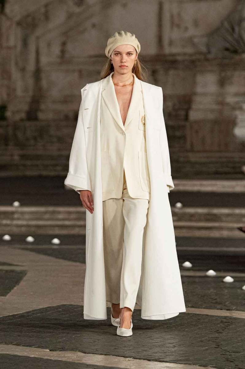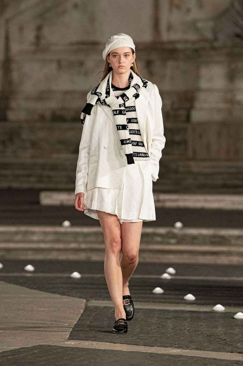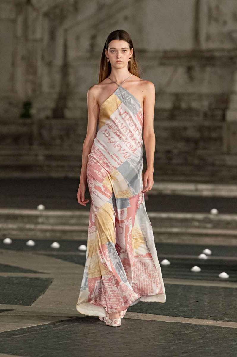 Stile di vita, la grande bellezza del cinema e l’opulenza artistica sono stati i concetti cardine espressi tramite il défilé firmato Laura Biagiotti. Un guardaroba all’insegna della leggerezza delle pietre, della lavorazione di maglie con punti e intrecci scolpiti come fossero bassorilievi; poi ancora, stampe, decori e forme. La palette di colori ha ricordato le sfumature di Roma: toni dal rosa all’ocra, al giallo, fuxia, arancione, viola e bianchi grezzi.