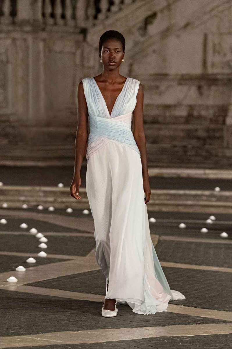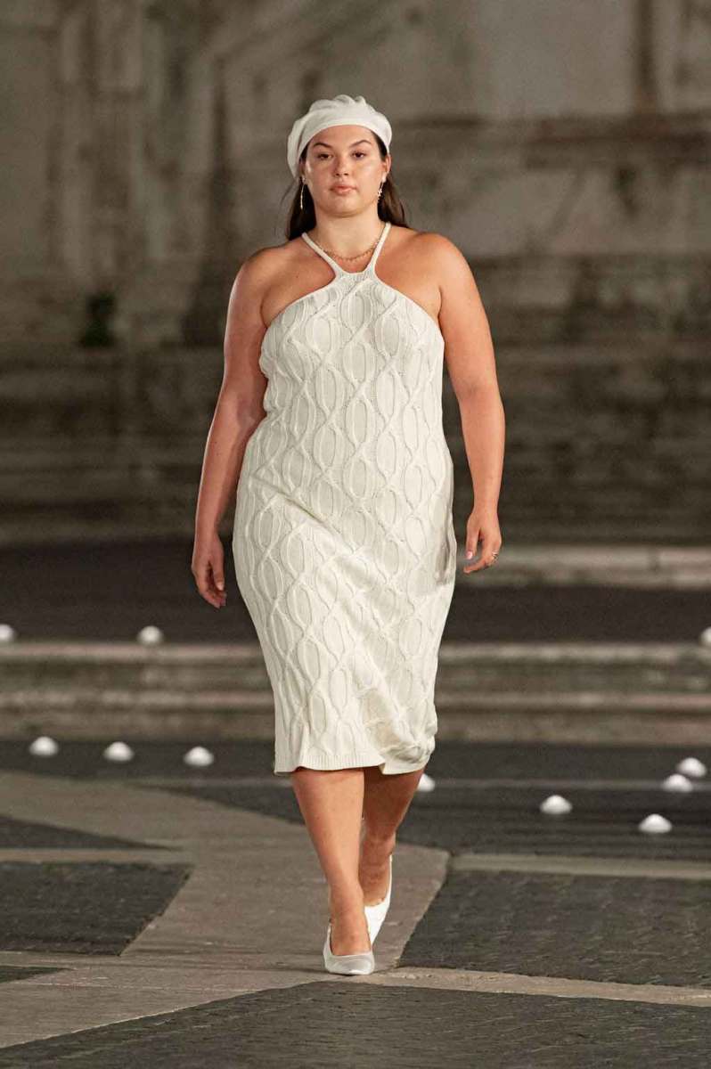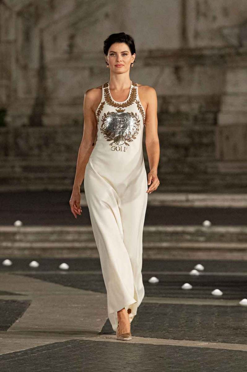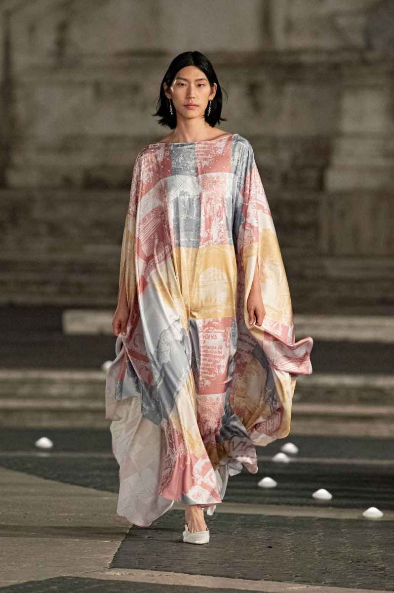 Stile di vita, la grande bellezza del cinema e l’opulenza artistica sono stati i concetti cardine espressi tramite il défilé firmato Laura Biagiotti. Un guardaroba all’insegna della leggerezza delle pietre, della lavorazione di maglie con punti e intrecci scolpiti come fossero bassorilievi; poi ancora, stampe, decori e forme. La palette di colori ha ricordato le sfumature di Roma: toni dal rosa all’ocra, al giallo, fuxia, arancione, viola e bianchi grezzi.