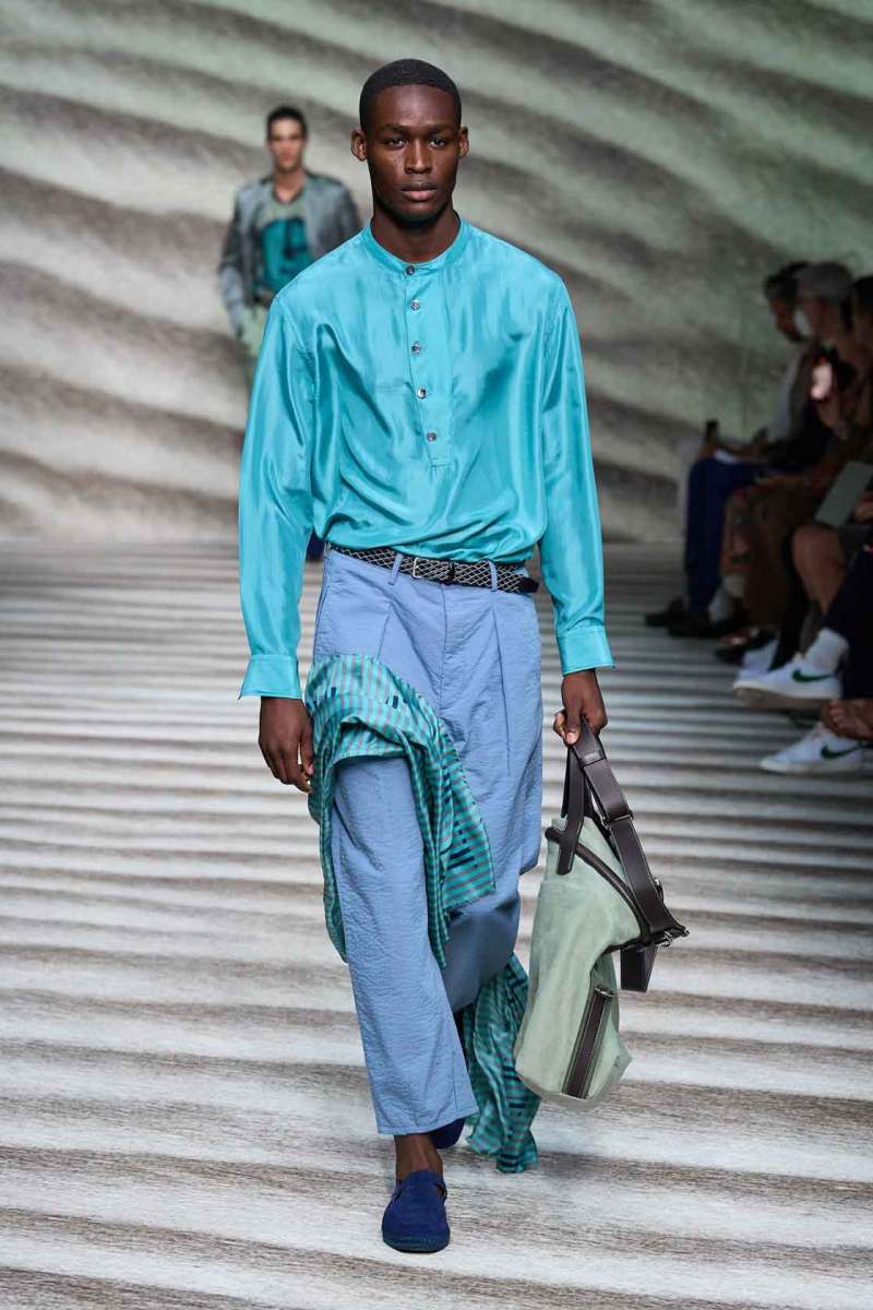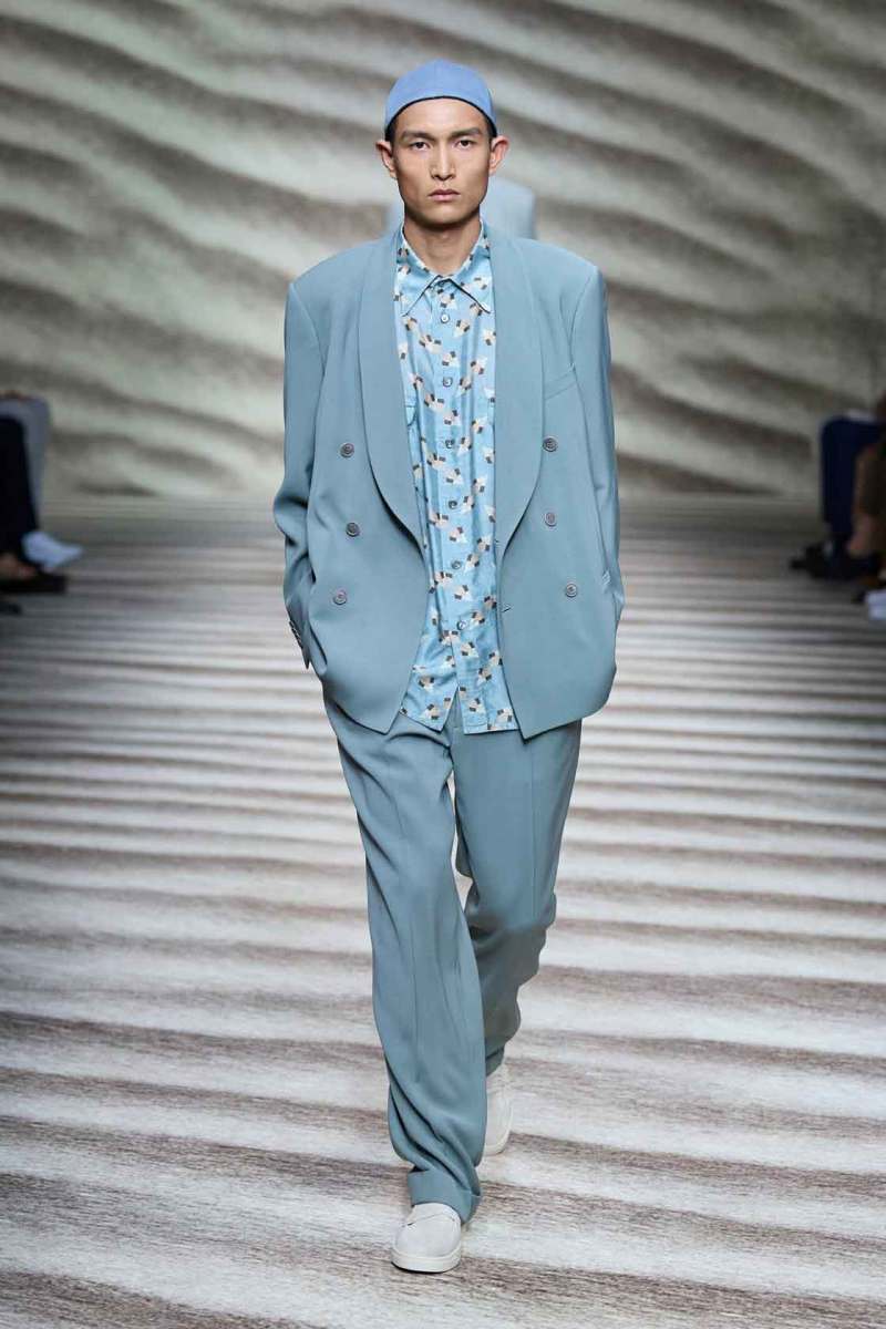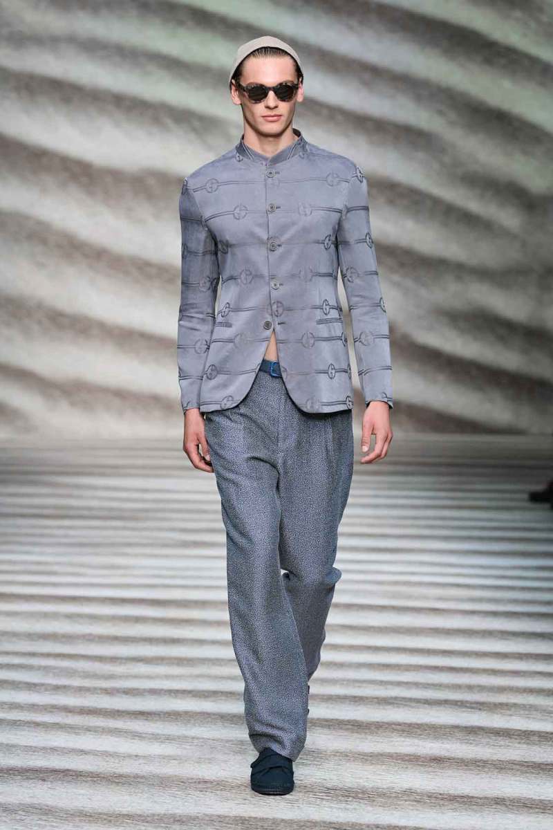 Una collezione, quella di Re Giorgio per la primavera estate 2023 uomo, che mette in passerella «un Armani classico con simpatia». Così dice lo stilista ultraottantenne, che spiega l’intento di voler «enfatizzare i codici del marchio con modernità».