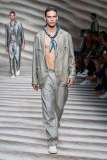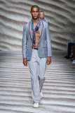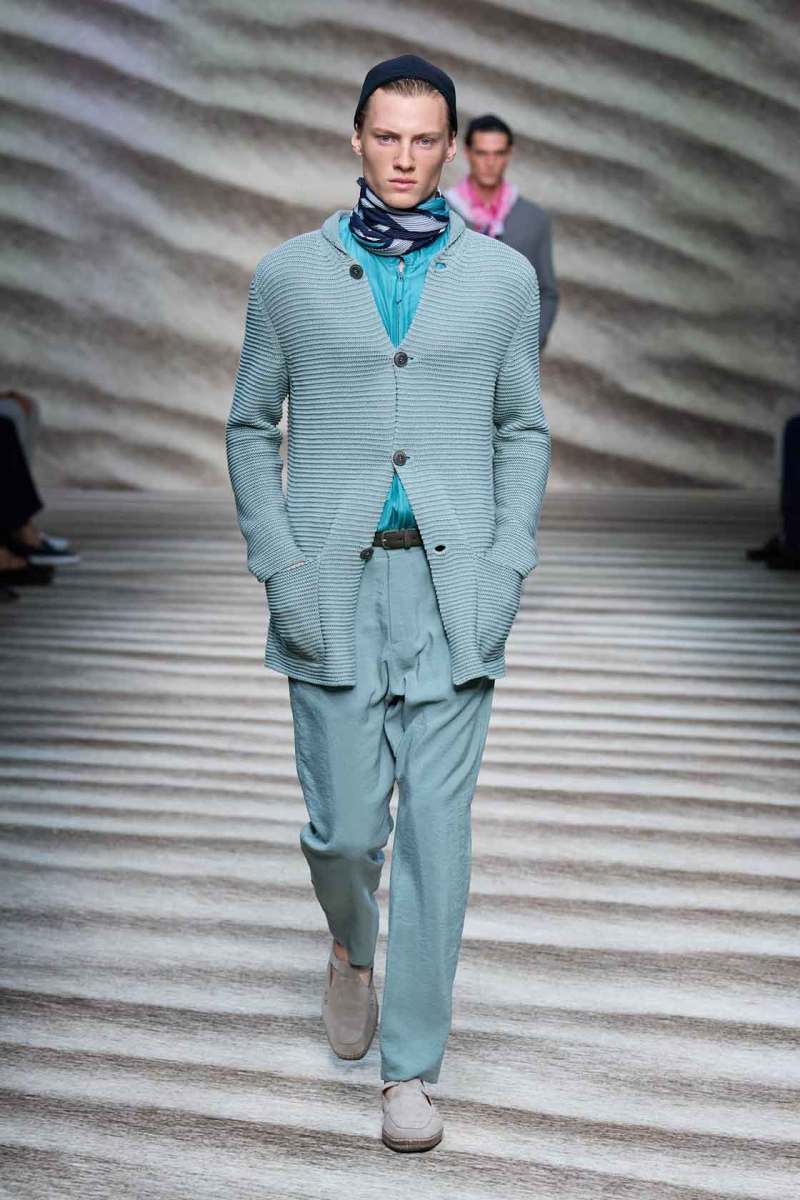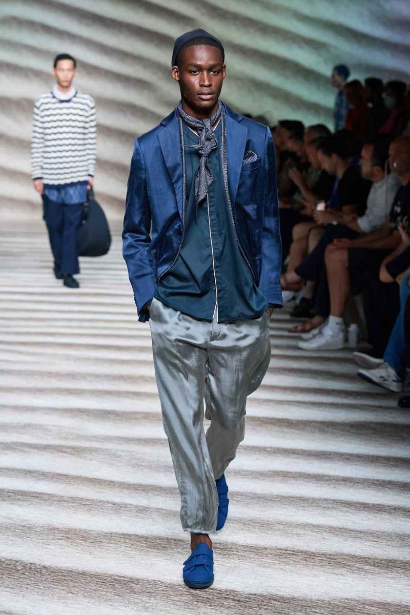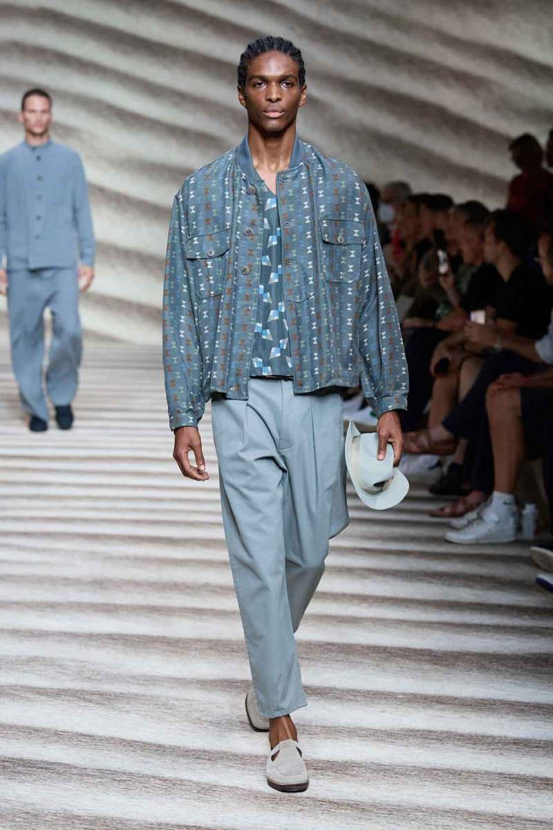 Fin dal look di apertura si percepisce un’atmosfera rilassata, ai confini col loungewear. I capi sono freschi, dai tagli fluidi, che ispirano comodità. Giacche scivolate, pantaloni che cadono morbidi, casacche-camicie, caban con cappuccio e maglioni in cotone. Il look è quello di un uomo curato nel dettaglio, ma non invasivo. Classico, ma moderno. Ma in cosa consiste questa modernità?