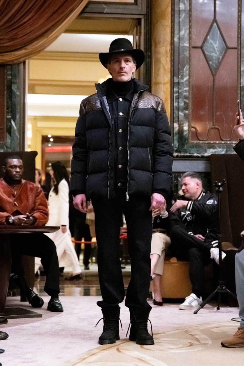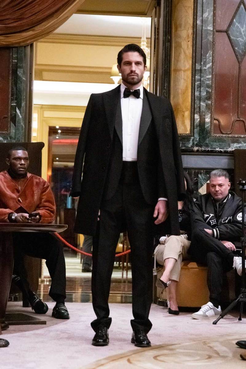 Gli elementi cardine, e sicuramente più iconici della collezione, sono il maglione bianco con il simbolo del brand, la giacca di pelle che richiama lo stile italiano e il comfort, lo smoking e i cappotti in cashmere.