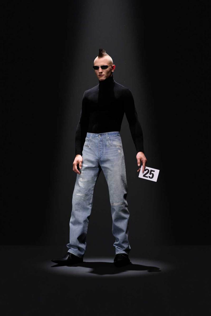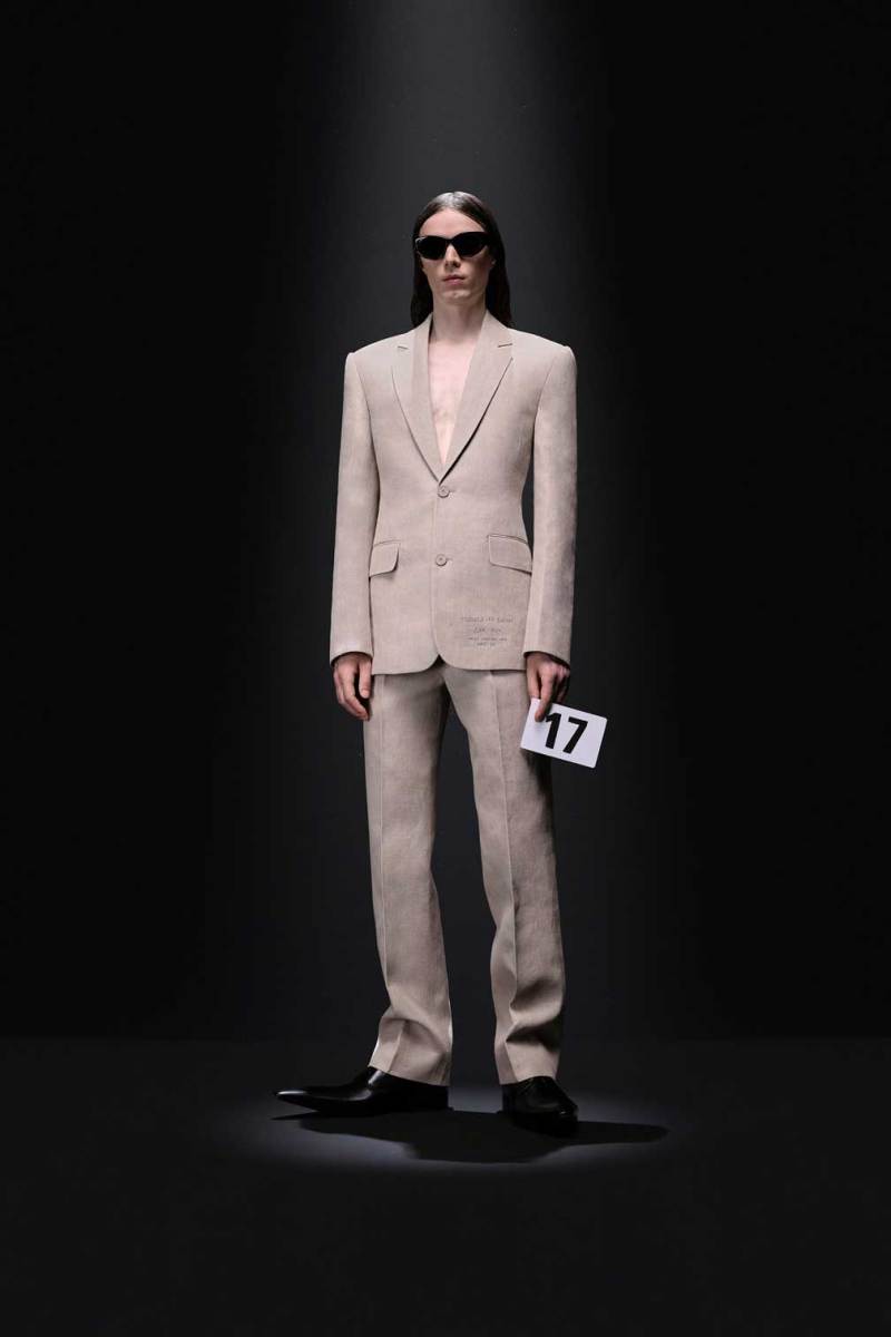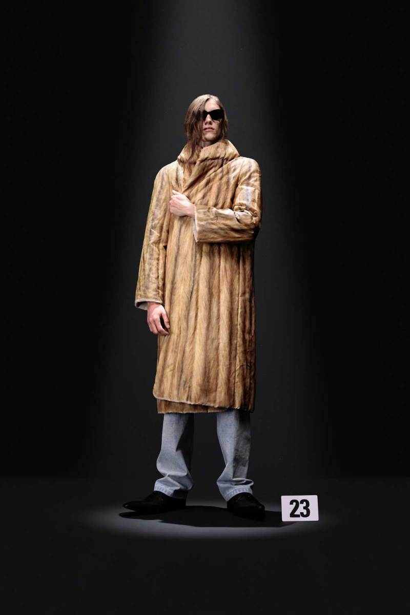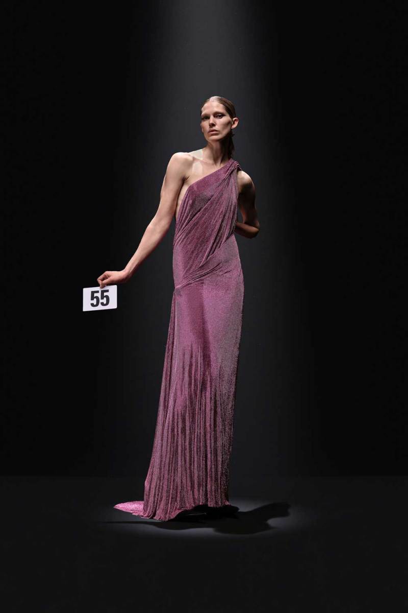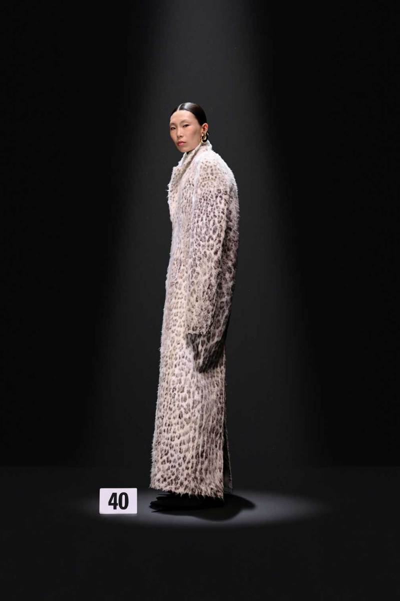 A Parigi è tempo di Alta Moda, e nel palazzo riservato alla Couture di Balenciaga sfila la nuova collezione Haute Couture AI 2023/2024. Sulle note della voce di Maria Callas, rivisitata dall’intelligenza artificiale, Demna manda in cortocircuito il senso del tempo e dello spazio congelando i capi di sua creazione come in un vecchio scatto. L’indissolubile legame tra passato e presente è evidente sin dal primo look, rivisitazione di un abito originale di Cristóbal Balenciaga, indossato dalla sua modella preferita, Danielle Slavik, e amato anche dalla già principessa Grace Kelly. La modella infatti veste in velluto total black anni ’50 su cui spicca la doppia collana di perle bianche abbinata ai guanti, anch’essi in velluto. Chiude invece la sfilata l’artista Eliza Douglas, che assume il ruolo di una Giovanna D’Arco 2.0 portando un abito stampato in 3D di resina argentata che dà l’effetto di una pesante armatura, come a simboleggiare il senso di protezione e sicurezza che ci forniscono i vestiti che indossiamo nelle nostre battaglie quotidiane.