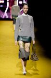 Tra gli accessori non passano di certo inosservate le borsette doppie dalla forma triangolare; ma il tocco di classe finale è dato dalle Mary Jane in vernice, ai piedi di tutte le modelle.Il risultato è una collezione che guarda alla storia della Maison, richiamando l’estetica di alcuni capi del passato, ma che allo stesso tempo innova e guarda al futuro, per incarnare la donna elegante, decisa e contemporanea, come solo Prada è in grado di fare.