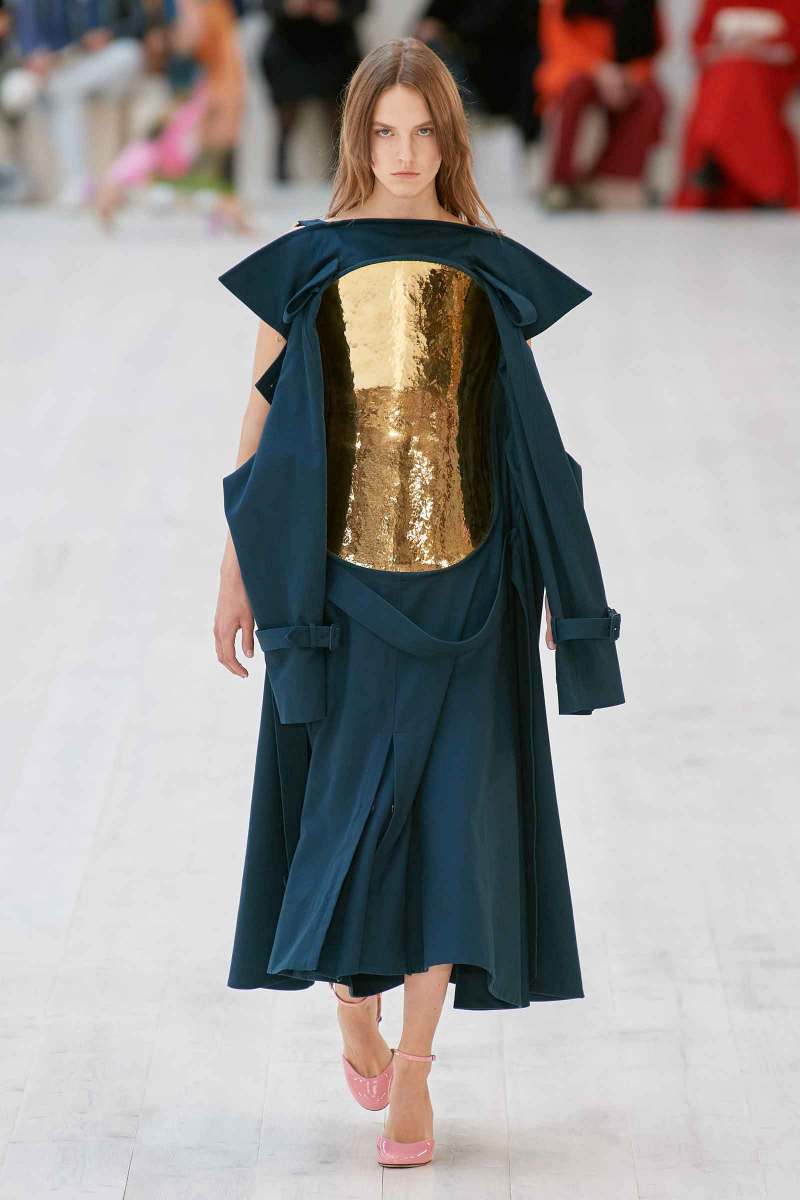 Le due opere che sicuramente hanno più influenzato il designer britannico sono la “Visitazione” e la “Deposizione”. Qui oltre al drappeggio, che rappresenta il protagonista, vengono ripresi anche i cosiddetti “corpi aggiunti” che, in architettura, conferiscono maggiore volume a una struttura lineare. Jonathan Anderson gioca con questa tecnica, aumentando la struttura dei capi grazie all’aggiunta di mantelle sulle spalle, guglie appuntite all’altezza del ventre.