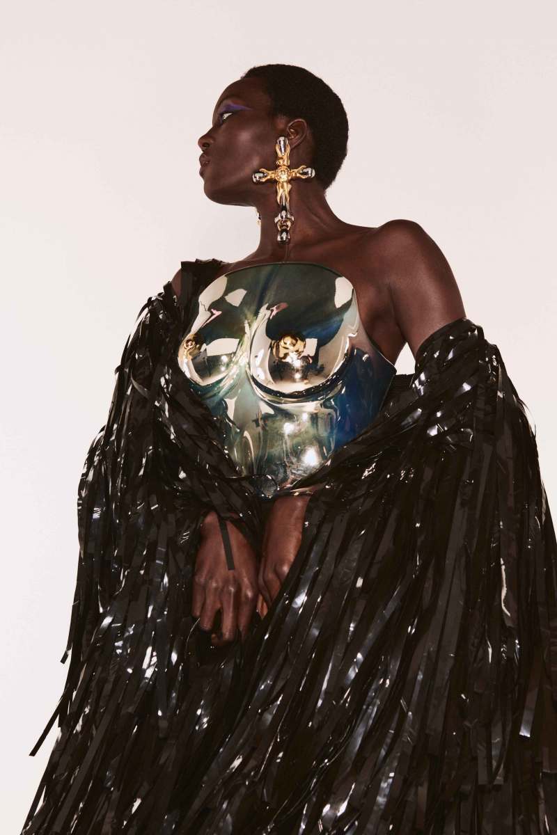 Alla sontuosità della seta, del velluto e del taffettà fanno da contrappunto materiali quasi futuristici come il vinile, la pelle di vitello trattata a specchio e la resina, quest’ultima impiegata per realizzare un bustino-torso che già spopola tra le influencer – prima su tutte, Kim Kardashian. È il trionfo della voglia di mostrarsi, di prendere la moda come un gioco un po’ folle che traghetta verso la luce dopo un periodo di buio.