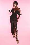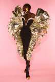 Due mani sovrapposte diventano dunque una cintura avvolgente, occhi con ciglia dipinte possono essere sia bottoni che maxi orecchini, lo stelo di una rosa gigantesca trafigge il collo di un mini dress in chiffon di seta e al tempo stesso lo sorregge. Grandi orecchie dorate fanno da pendenti, mentre una bocca sensuale diventa una pochette. Ai piedi, sia la punta degli stivali alti alla coscia che quella degli stiletto vertiginosi è arricchita da un calco di dita dei piedi dipinte d’oro.