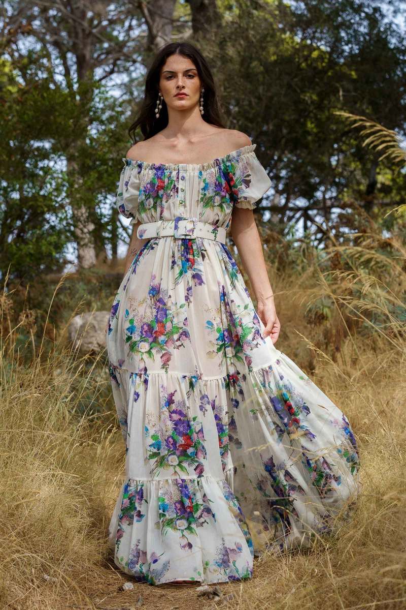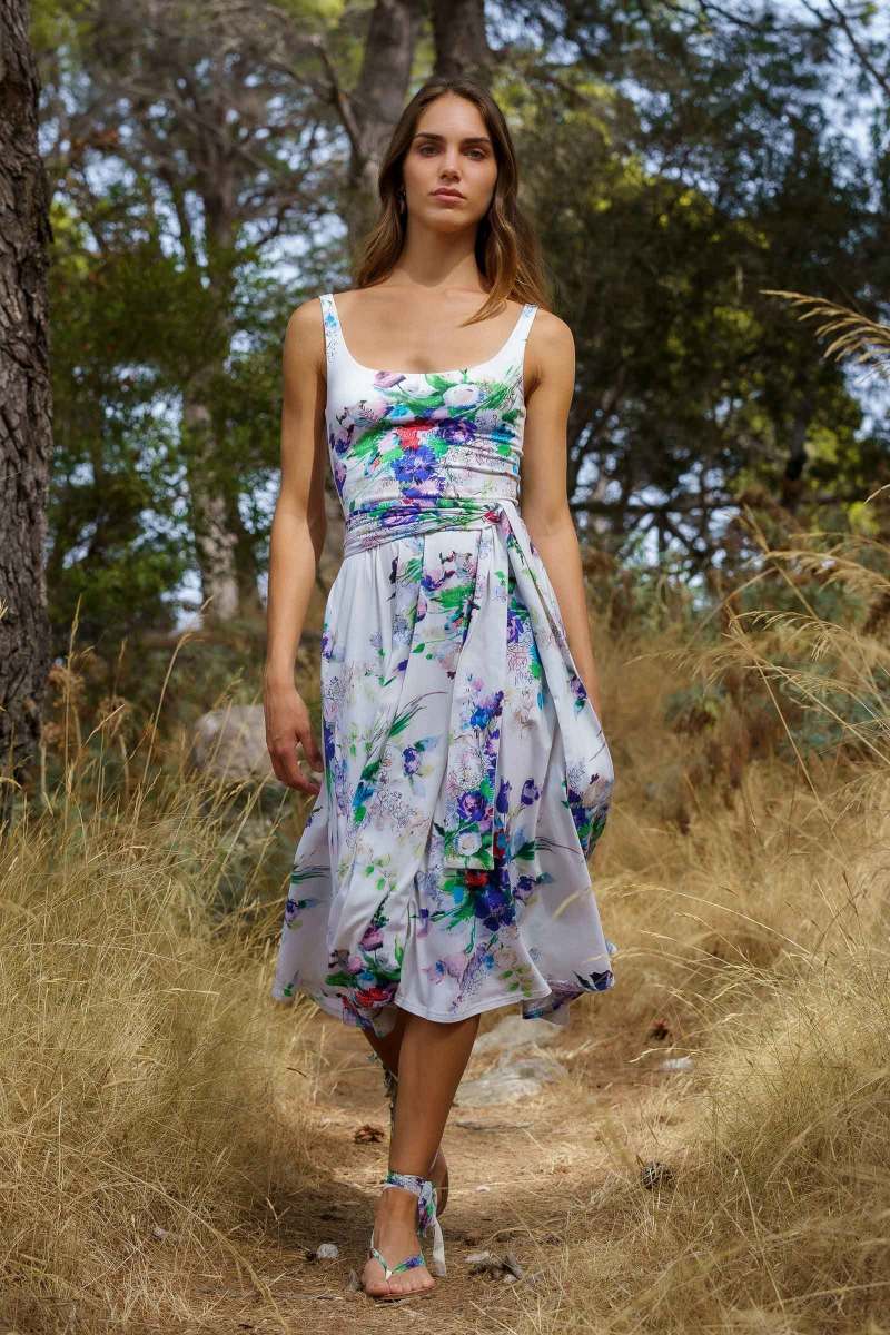 Motivi a base di fiori colorati delineano il tema della collezione. Impalpabili caftani a balze, abiti con scolli a barca, vestiti fluidi e chemisier, short con brassière, gonne a corolla e maxi-gonnelloni a volant; tutto il guardaroba che una donna che ama il mare, le vacanze, la spensieratezza, indosserebbe senza alcun dubbio. Gli abiti sono iper femminili, daily to night e timeless, veri e propri “amici dell’armadio” che dureranno nel tempo.
