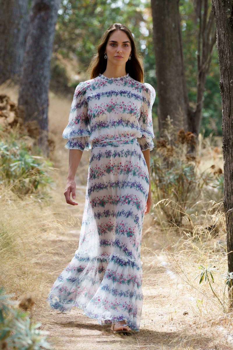 Le stampe archive, tra cui l’iconico print “papavero”, reso celebre negli anni ’90 da Julia Roberts, si declinano su sangallo, chiffon e garza, mentre i colori dal rosso al viola, fino al blu mare, compongono la palette dei tramonti di Capri. A donare un tocco di eleganza, ma senza esagerare, sono le calzature, per la maggior parte rappresentati da sandali bassi in cuoio con laccetti in velluto colorati che si legano intorno alle caviglie.