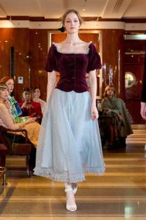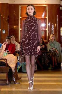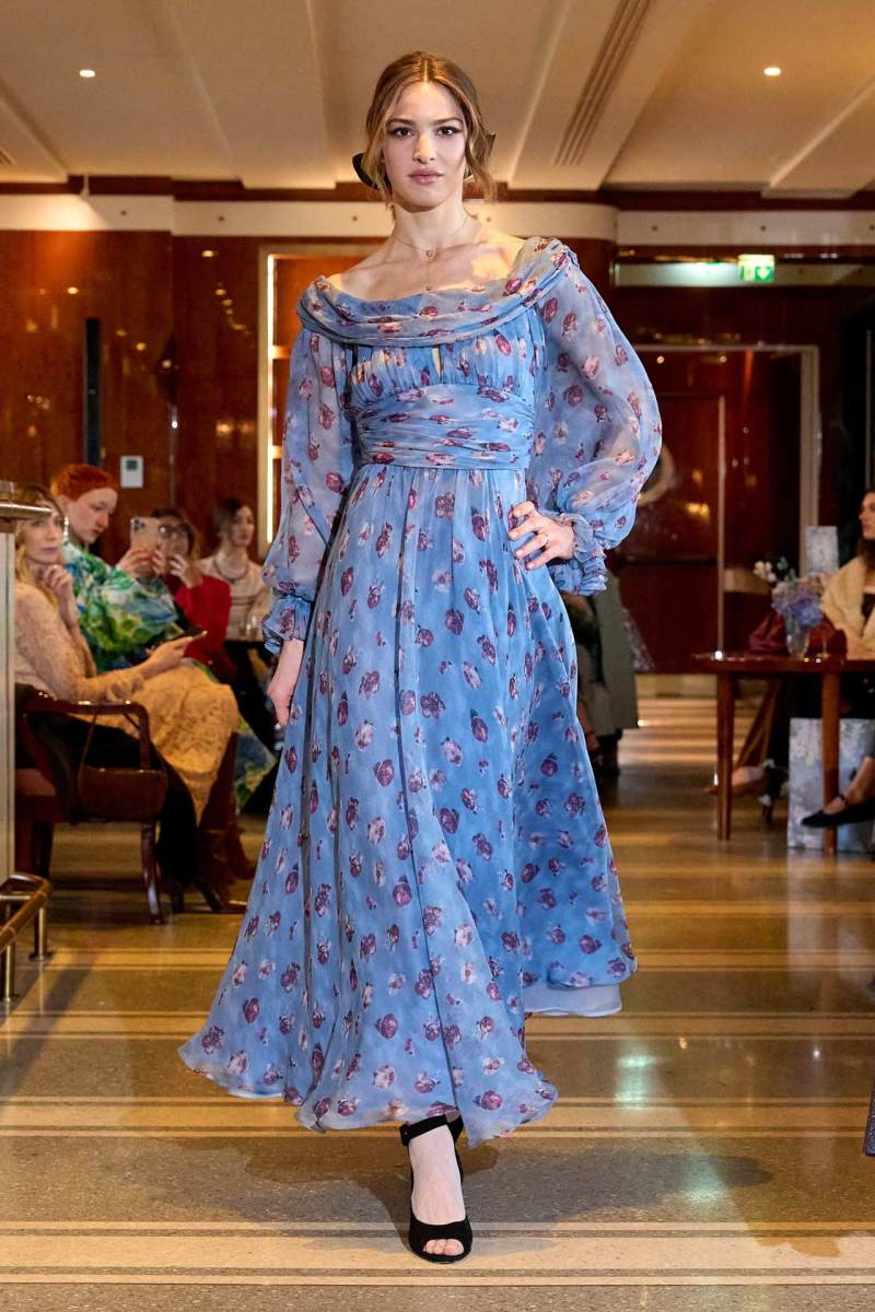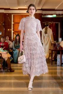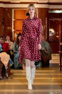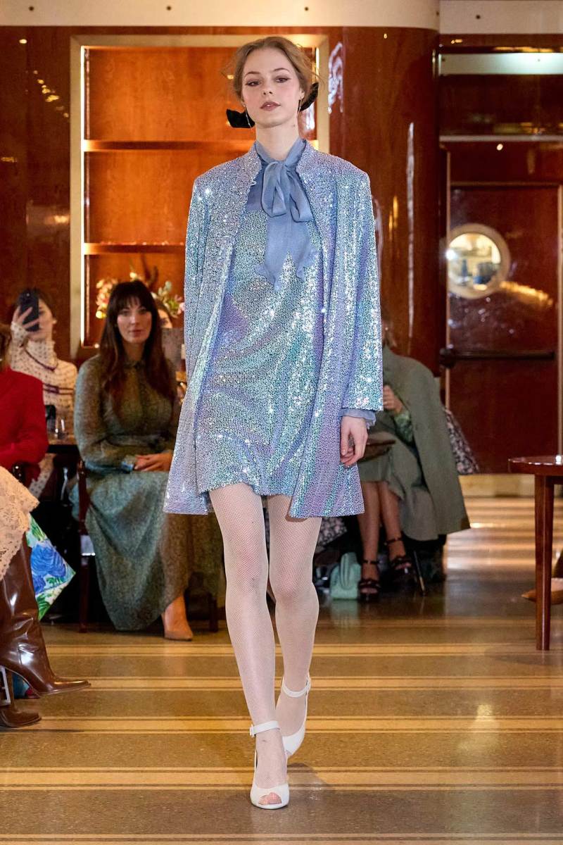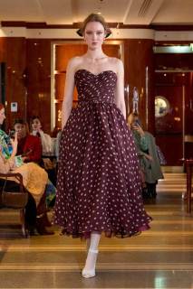 Milano, Casa Cipriani. Un luogo che profuma di fascino senza tempo, proprio come la nuova collezione di Luisa Beccaria, che per l’autunno inverno 2025/26 accende la passerella di romanticismo e nostalgia. Into the Light è un viaggio negli anni ’50, tra pois, pizzi e fiocchi, in un’atmosfera che sa di vecchi film in technicolor e grandi dive dalla bellezza senza sforzo.