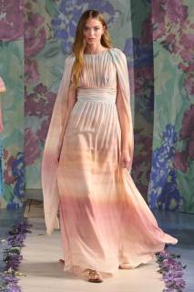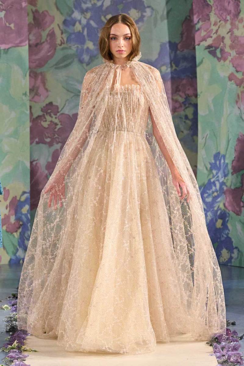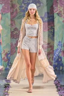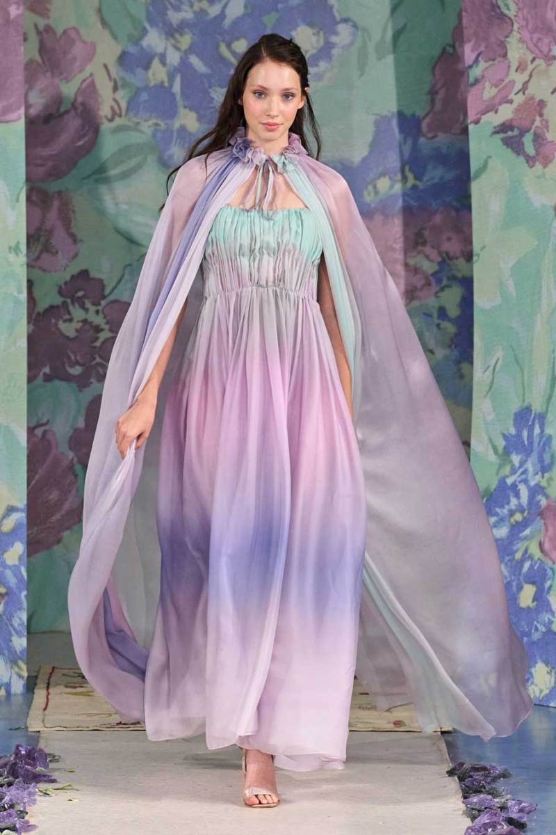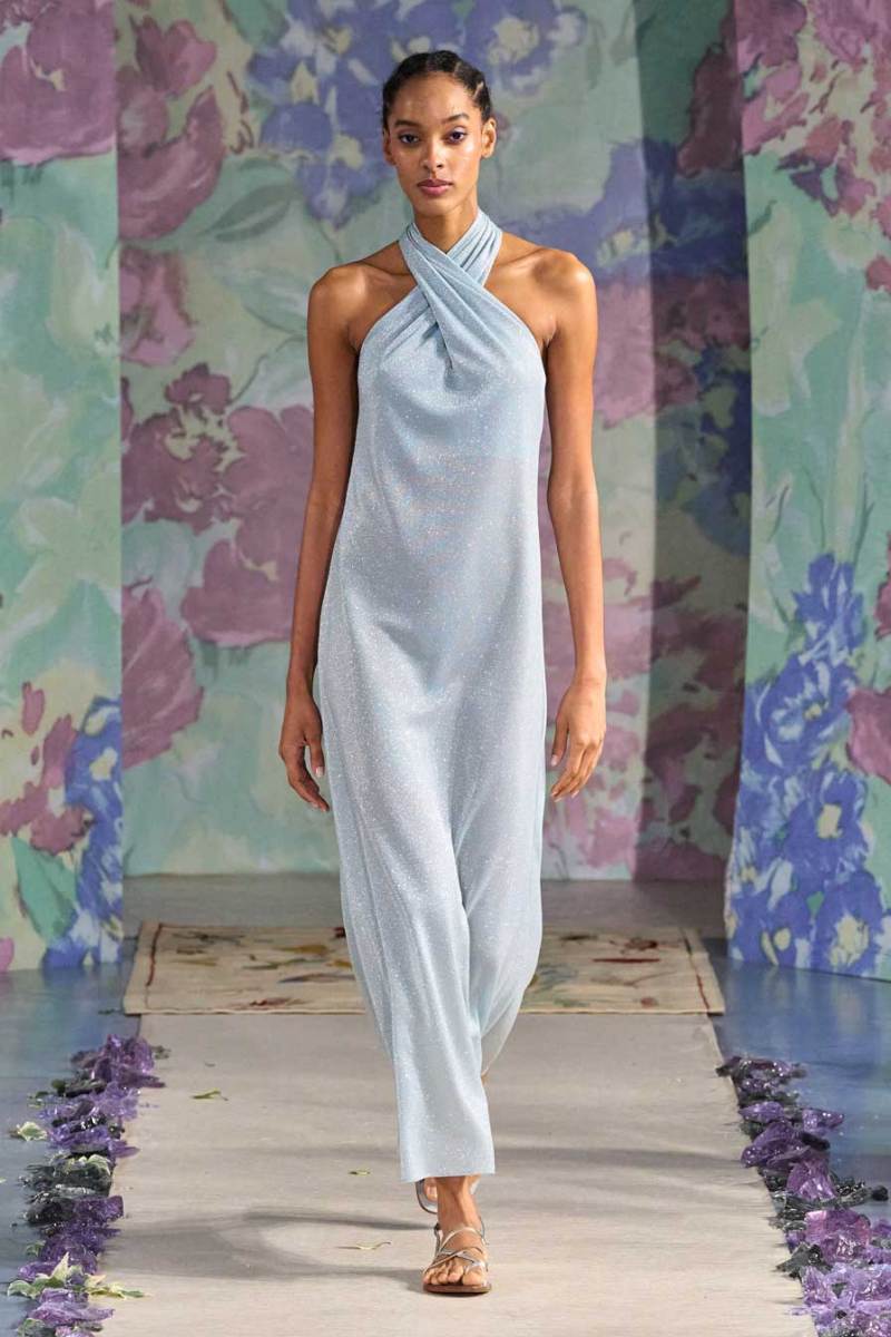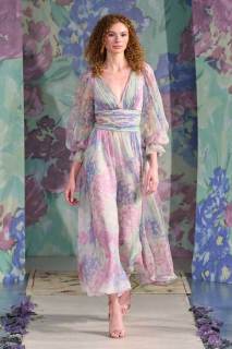 La nuova collezione firmata Luisa Beccaria celebra la bellezza della natura, del mondo in tutti i suoi elementi. Ogni cosa ruota intorno all’incredibile gioco di intrecci tra consistenze e colori degli abiti: i tessuti morbidi e svolazzanti si uniscono a palette delicate, linee dinamiche e texture leggere. Una passerella dal sapore delicato e dall’allure estremamente elegante e sofisticato.
