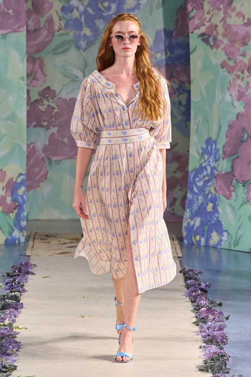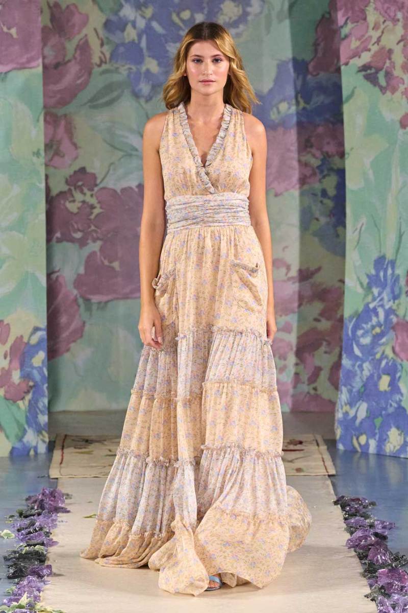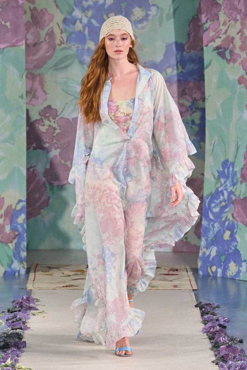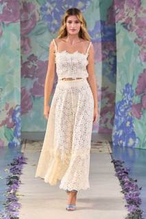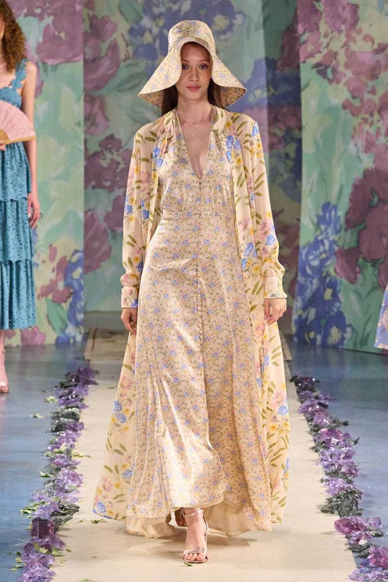La nuova collezione firmata Luisa Beccaria celebra la bellezza della natura, del mondo in tutti i suoi elementi. Ogni cosa ruota intorno all’incredibile gioco di intrecci tra consistenze e colori degli abiti: i tessuti morbidi e svolazzanti si uniscono a palette delicate, linee dinamiche e texture leggere. Una passerella dal sapore delicato e dall’allure estremamente elegante e sofisticato.
