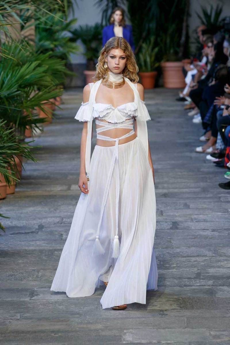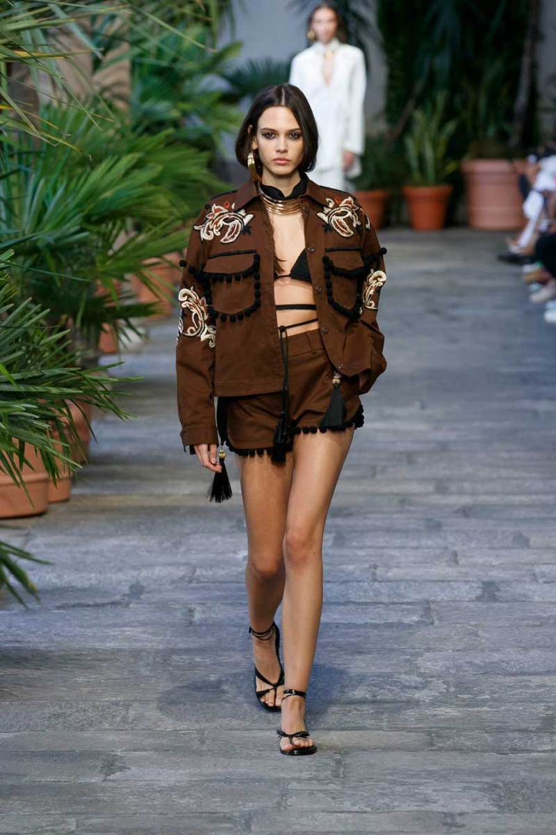 L’obiettivo è quello di scoprire nuovamente l’essenza della femminilità. Stampe, ricami, applicazioni in stile boho chic sono gli elementi cardine su cui si regge l’intera passerella.