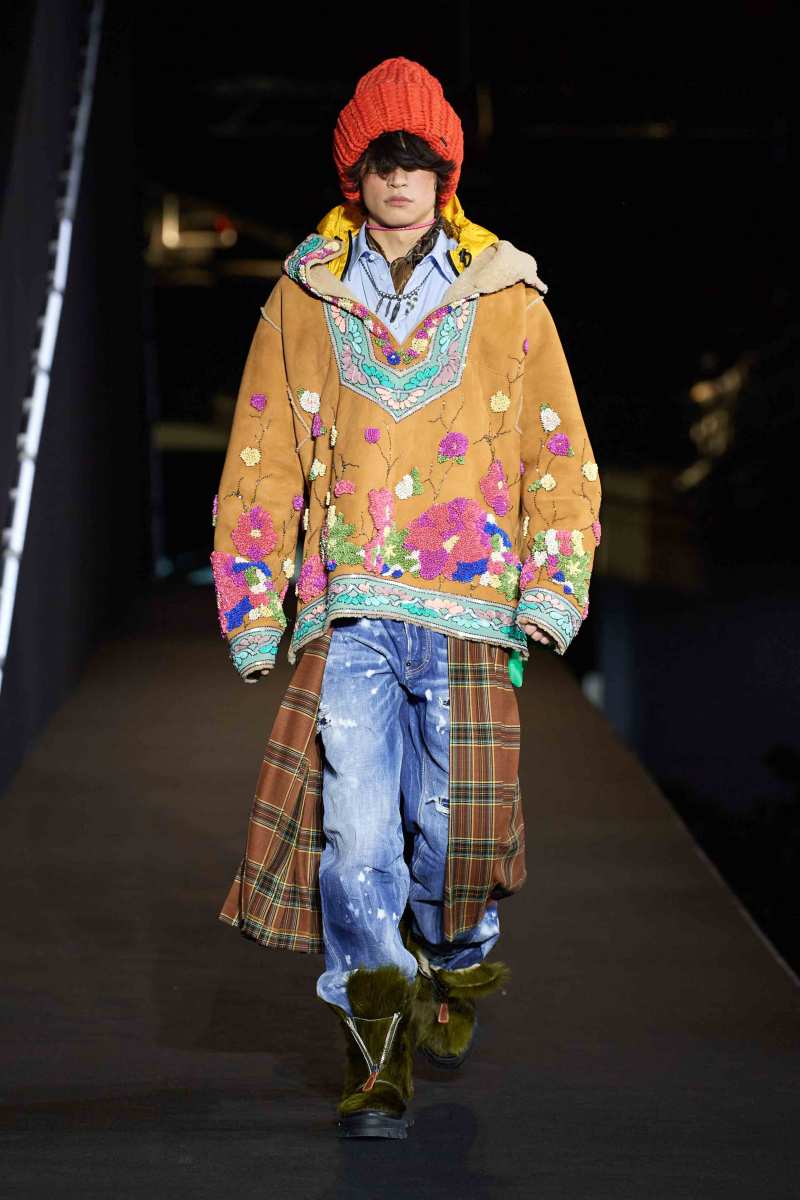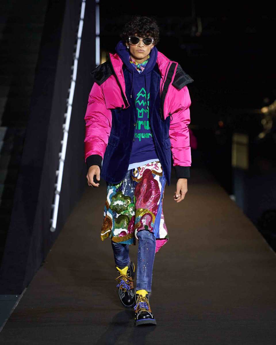 La sfilata Dsquared2 è una delle prime ad aprire questa edizione di Milano Moda Uomo: la più fisica dall’inizio della pandemia. I gemelli canadesi Dean e Dan Caten celebrano il ritorno in passerella, dopo le ultime sfilate in formato digitale, accogliendo i presenti e sottolineando la gioia di essere di nuovo dal vivo, perché “è così che la moda dovrebbe essere”, dicono.