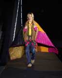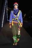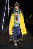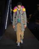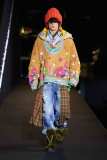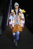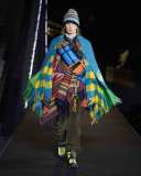 Il volume e l’opulenza delle giacche e dei capispalla si uniscono ad accostamenti e sovrapposizioni di texture e fantasie. Il mix di tessuti impermeabili, piumini imbottiti e poncho colorati in lana è il tratto caratteristico di buona parte della collezione.