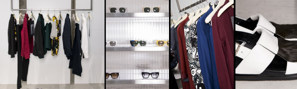 Le stampe evidenziano e disturbano la precisione architettonica dei tagli, su felpe accoppiate, camicie e pantaloni. Densa la palette cromatica: blu inchiostro, verde scuro, grigio, nero e beige sono accentati da tocchi di rosso intenso, giallo pallido, ruggine. Da questi prendono vita le stampe: scarabocchi, geometrie, righe e fiori. I tessuti sono leggeri e ariosi, ma fermi: lane, jersey accoppiato, cotone parachute. Gli accessori, in linea, sono funzionali, grafici, accattivanti. Dal classico zaino Marni ai sandali, alle sneakers.