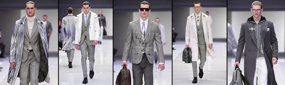 Per una metropoli in continuo fermento, il guardaroba si fa più gotico, uno stile Gotham City che si ritrova nei cappotti modello Wall Street, nei completi che comprendono l’intera gamma dei grigi, nelle camicie in pendant con le cravatte, nelle magnifiche spille con la V stilizzata, quasi stemma distintivo di un’elite scelta per governare il mondo.