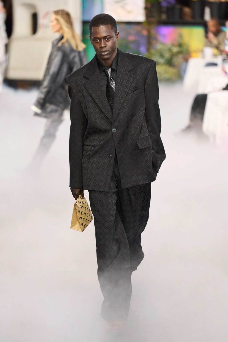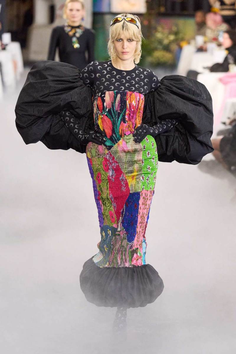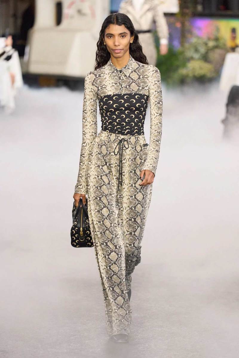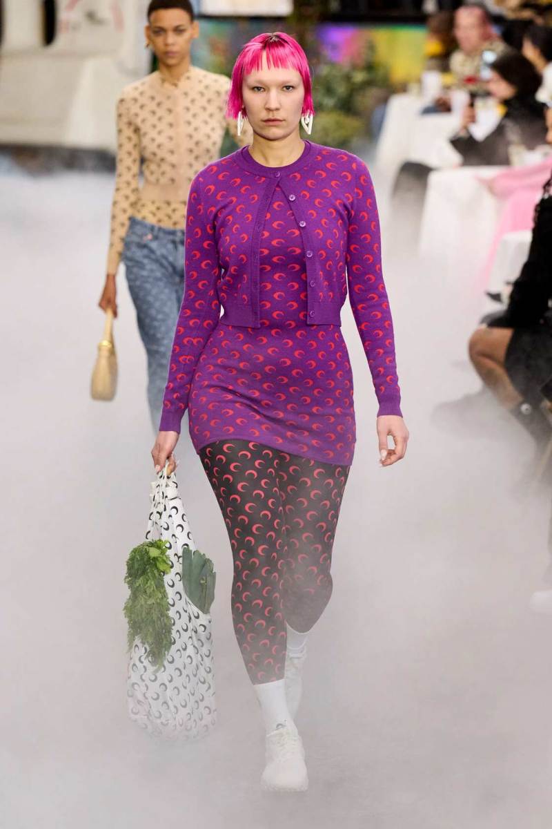 Lo stile è piuttosto sobrio, così come i colori della palette. Non manda però qualche tocco di colore più intenso, che infonde grinta al resto del guardaroba. Tra gli elementi iconici ricorrenti nei look presentati, il logo a mezza luna riscontrabile su vestiti, accessori, tute, pull e gonne; e i riferimenti al food e al mercato con i carrelli della spesa e le baguettes.