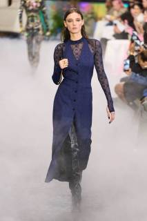 L’obiettivo è quello di portare in scena un’atmosfera disinvolta: la sfilata diventa una passeggiata amichevole in cui le modelle sfilano con grande disinvoltura. Il loro atteggiamento appartiene al quotidiano. Si mette un punto fermo alle sfilate lontane dalla realtà, a tratti distoniche e surreali, e si opta per la semplicità è la naturalezza della vita. A calcare la passerella, tra le modelle, spicca Denise Ohnona, sosia numero uno dell’iconica Kate Moss.