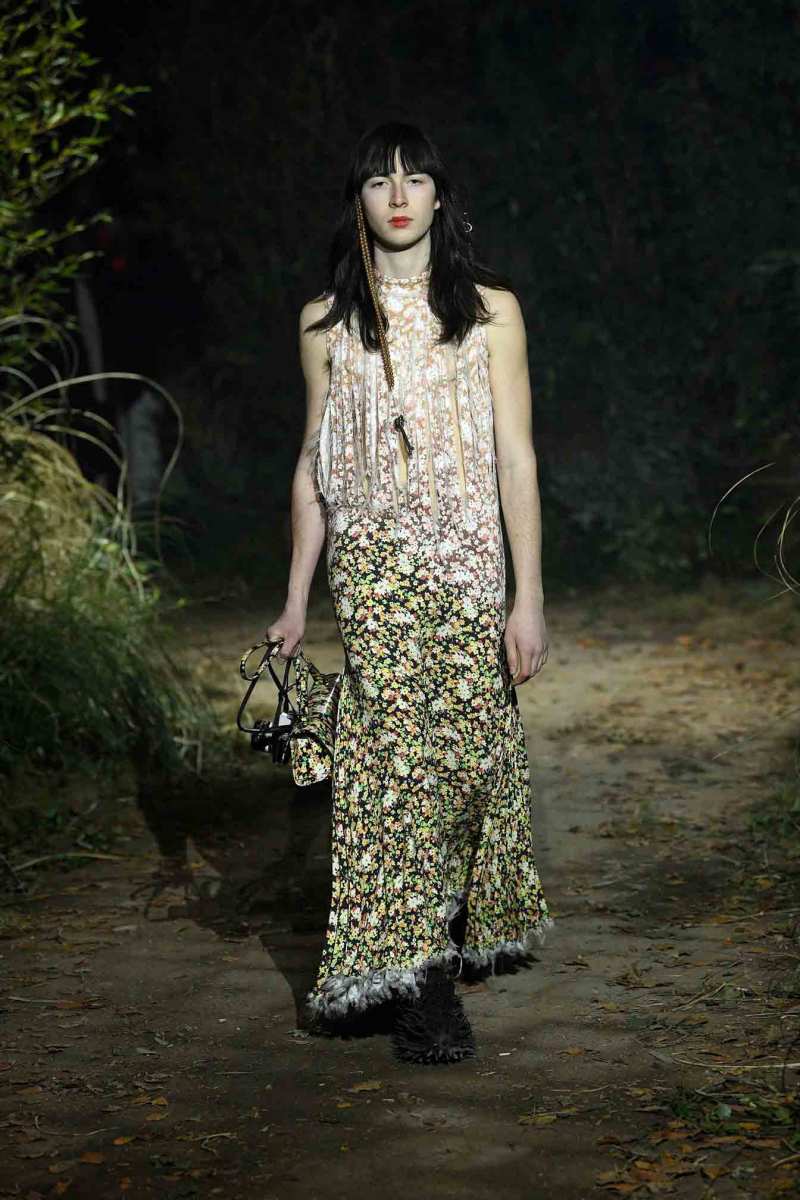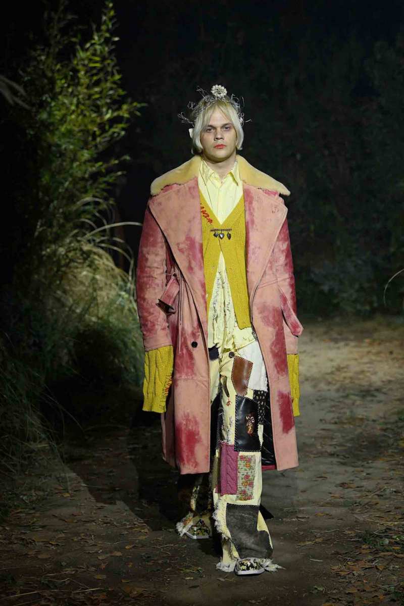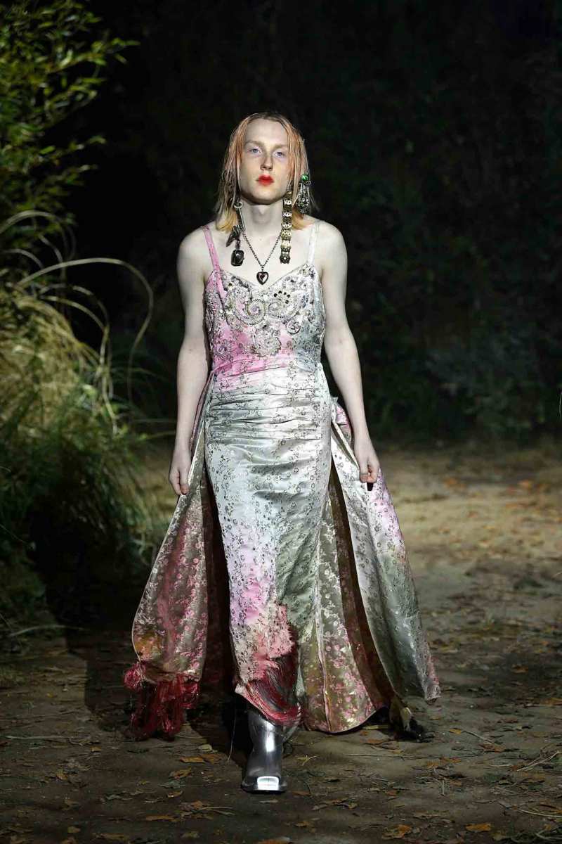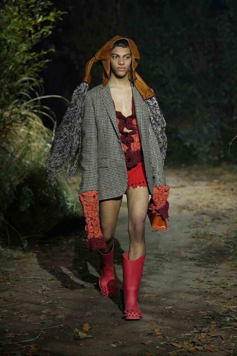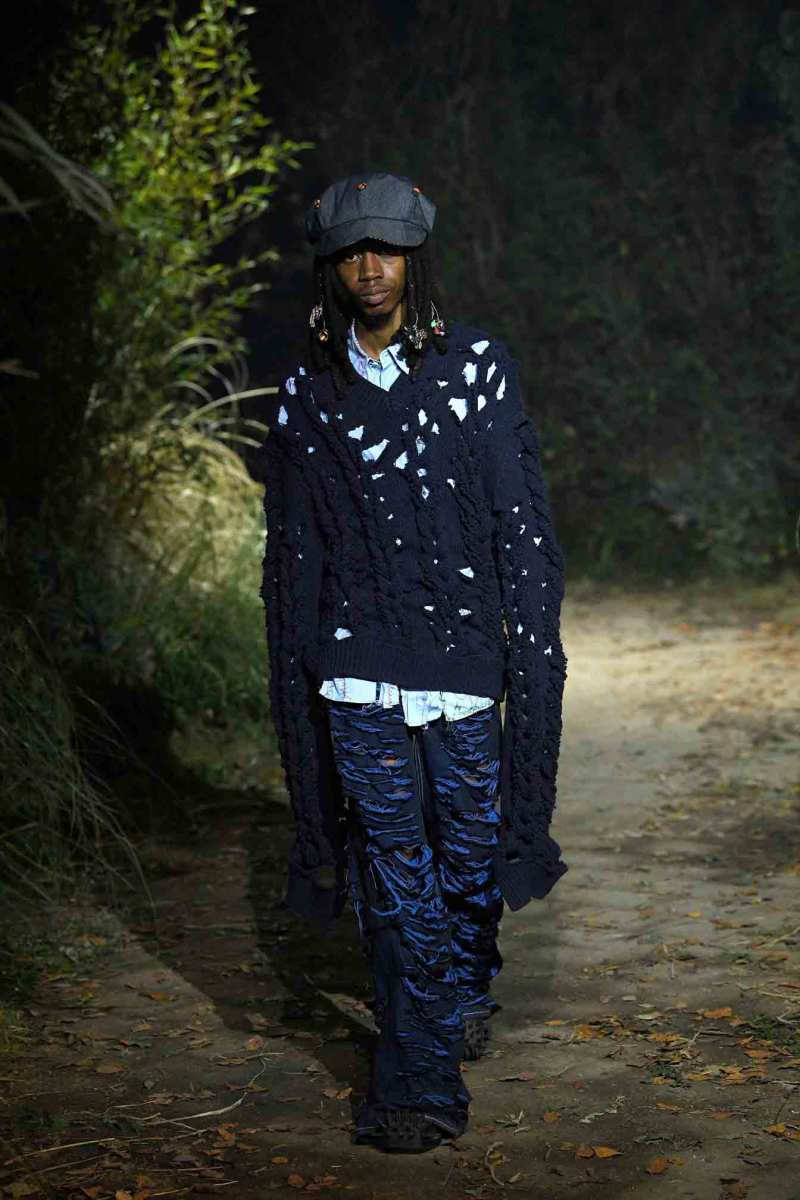 Tutto assume un nuovo significato in questo mondo immaginato da Francesco Risso; un giubbotto in pelle può trasformarsi in turbante, i maglioni indossati all’ingiù e anche la nudità vengono visti sotto un altro punto di vista. E poi ancora, sottovesti di raso cipria strappata a strisce e abiti sartoriali deliberatamente rammendati con fili luccicanti e passamontagna in maglia fai da te.