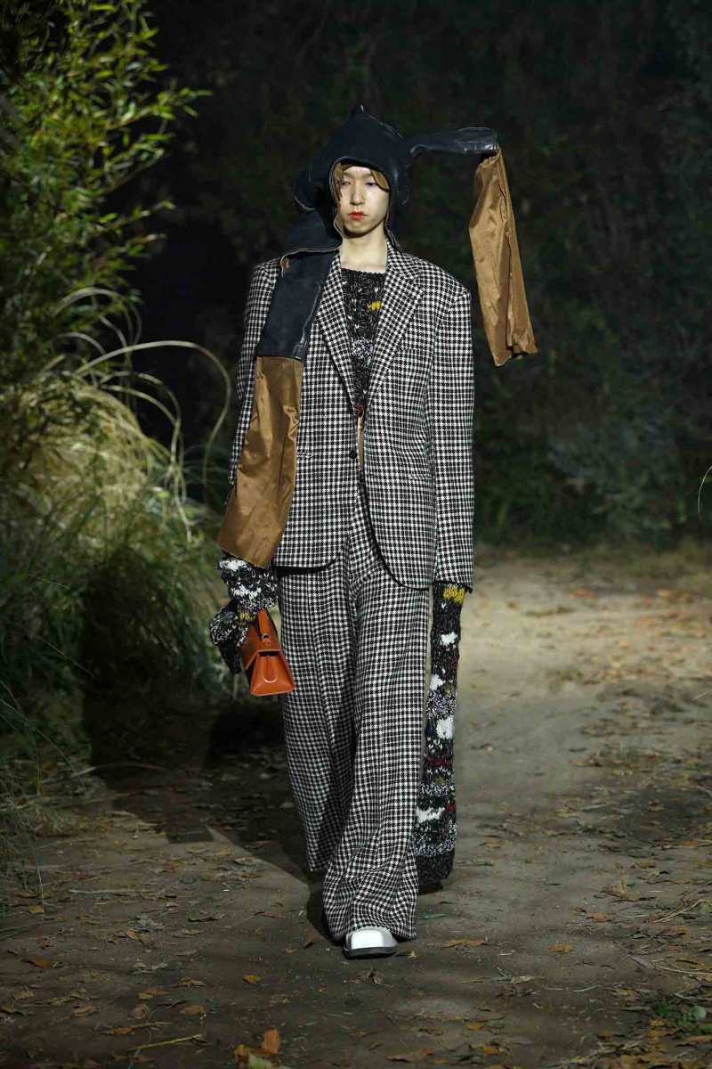 Francesco Risso, direttore creativo del brand, e la famiglia Marni, si sono chiesti: “Un maglione riparato è più vecchio o più nuovo per il rammendo?”. Si potrebbe partire da questa riflessione per creare il giusto contesto in cui far vivere gli abiti di questa collezione, nella quale i rammendi, gli strappi, le riparazioni, gli intrecci abbondano e trasformano i capi in simboli del valore e della cura affettuosa nel tempo.