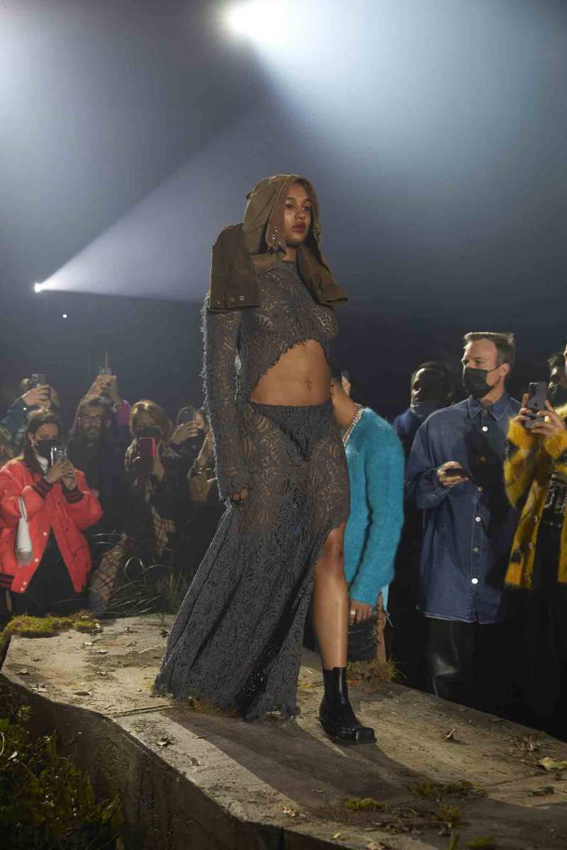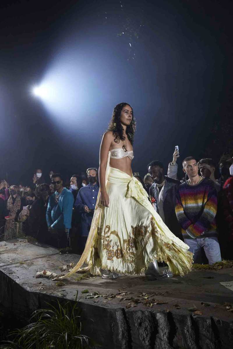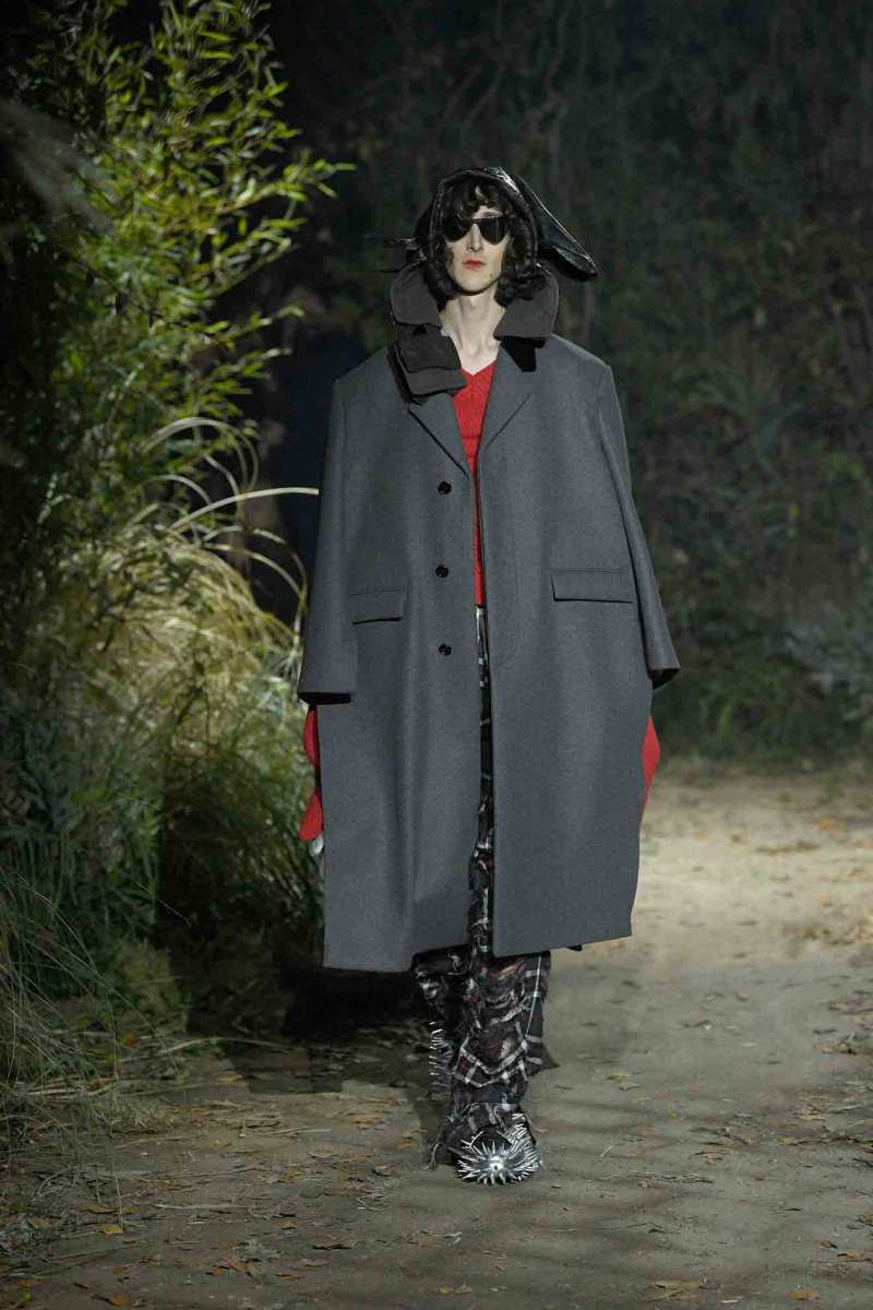 Per mettere in scena il suo ultimo esperimento di comunità creativa e upcycling, Francesco Risso, direttore creativo del brand, ha scelto uno spazio verde cavernoso e ricoperto di vegetazione, con una formazione rocciosa centrale che sembra essersi riappropriata dei propri spazi in modo spontaneo. Si tratta infatti di un luogo dentro gli spazi ex industriali della Manifattura tabacchi, che rispecchia perfettamente l’idea creativa che il marchio vuole mostrare per questa fall/winter 22.