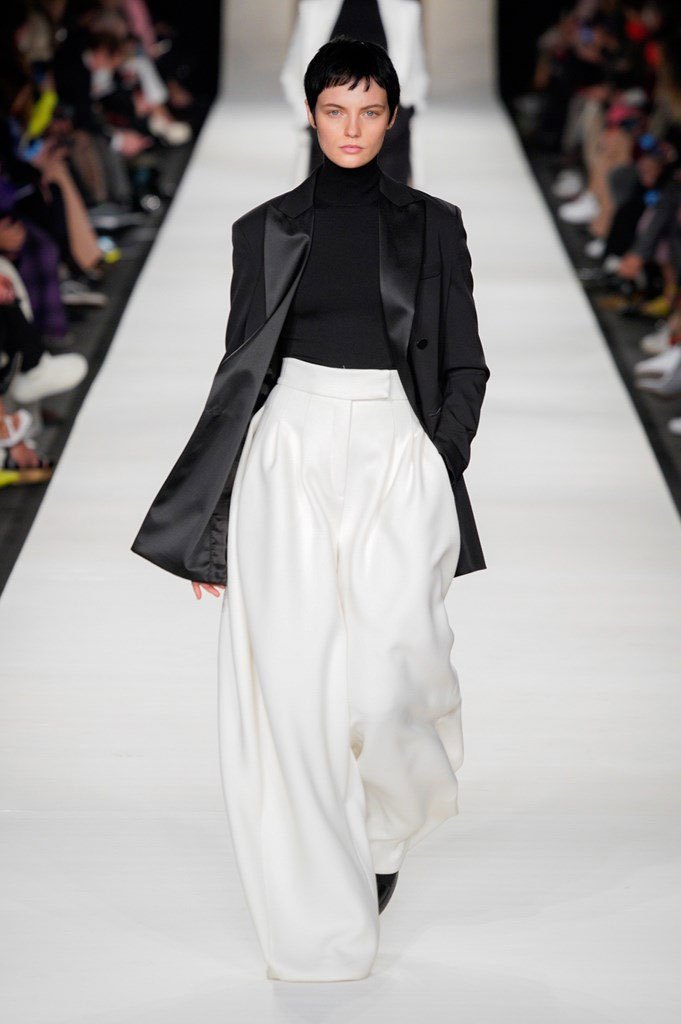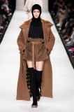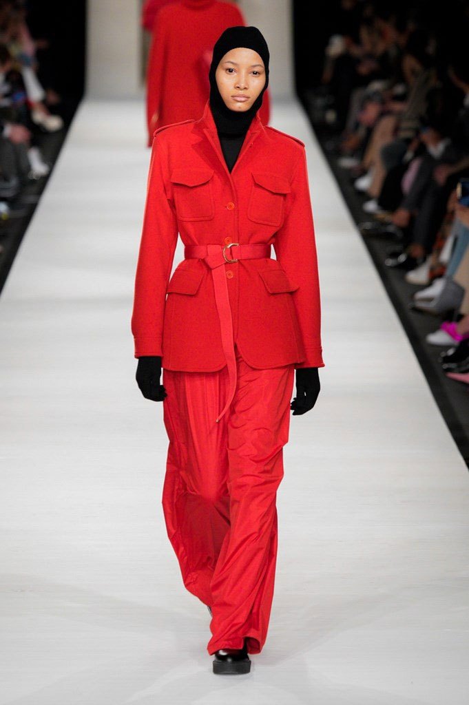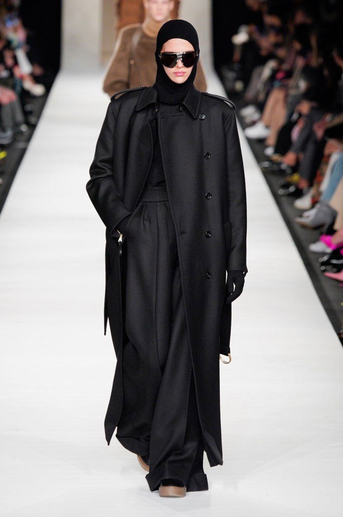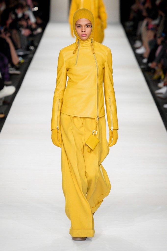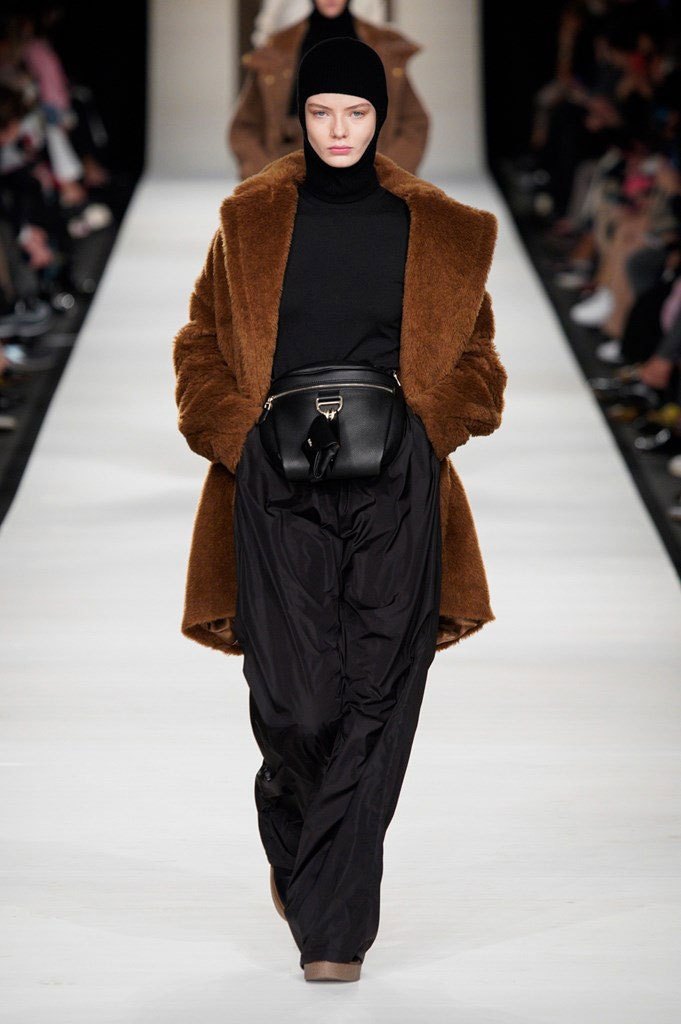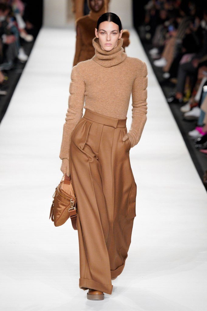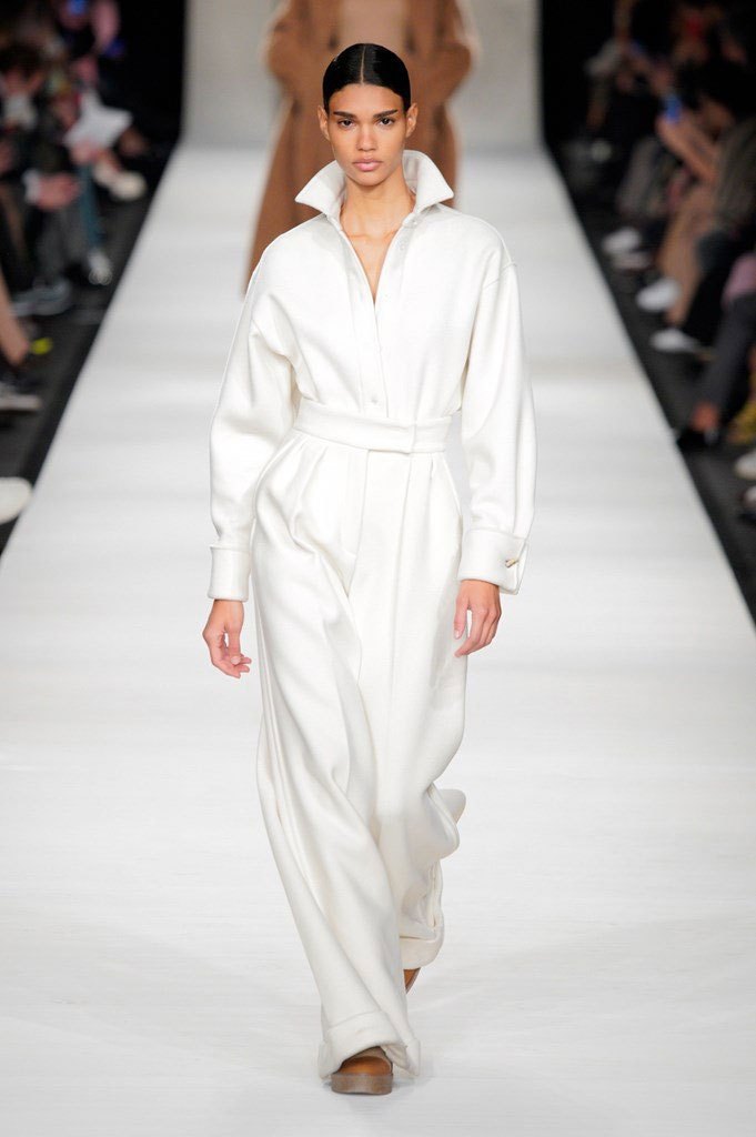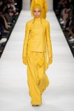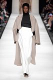 I colori sono caldi e selezionati: si parte dal cammello, un colore signature per Max Mara, per poi passare al nero e al rosso intenso, con qualche bianco e giallo qua e là ad accendere la passerella. Non è un inverno caleidoscopico quello della nuova collezione, bensì “pesante”, fatto di lana, nylon e larghissimi pantaloni in twill. Un cinturone in vita segna la silhouette, adornata dai grandi cappotti con spalle ampie e strutturate, che, anno per anno, fanno innamorare le fashion victims.