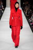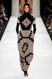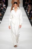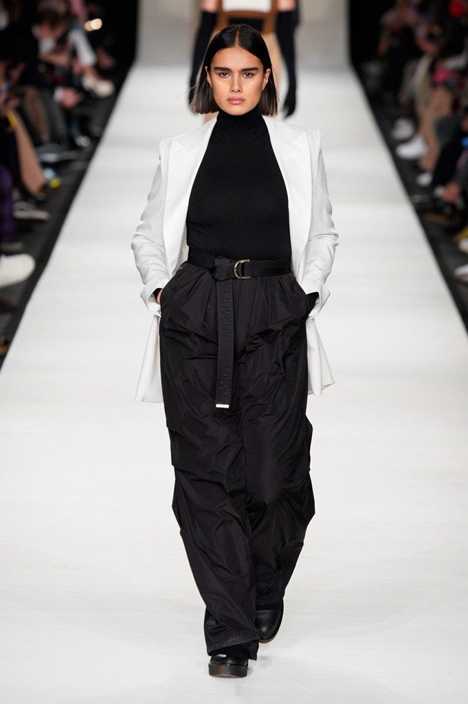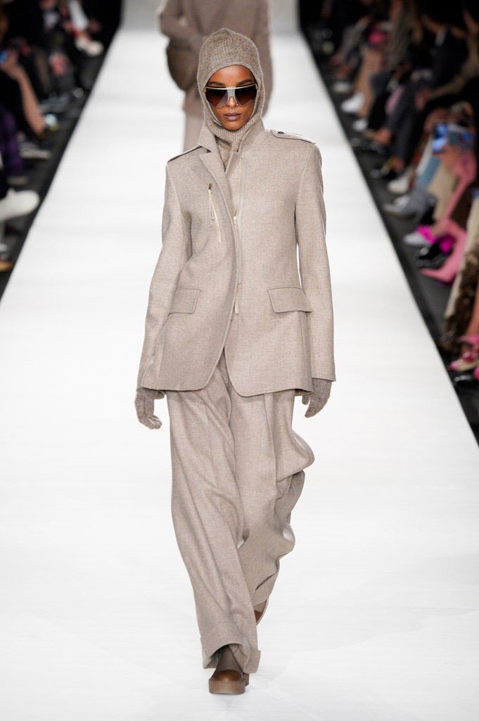 Anche nei tessuti il Max Mara Group si fa prendere la mano con esperimenti mai visti. Imbottiture anatomiche infilate sotto maglioni mohair e cuissard in lana richiamano lo stile militare – quasi robotico – delle armature. Larghi pantaloni a palazzo trapuntati, quasi fossero un piumino, con una cintura stretta in vita che cade sul fianco.