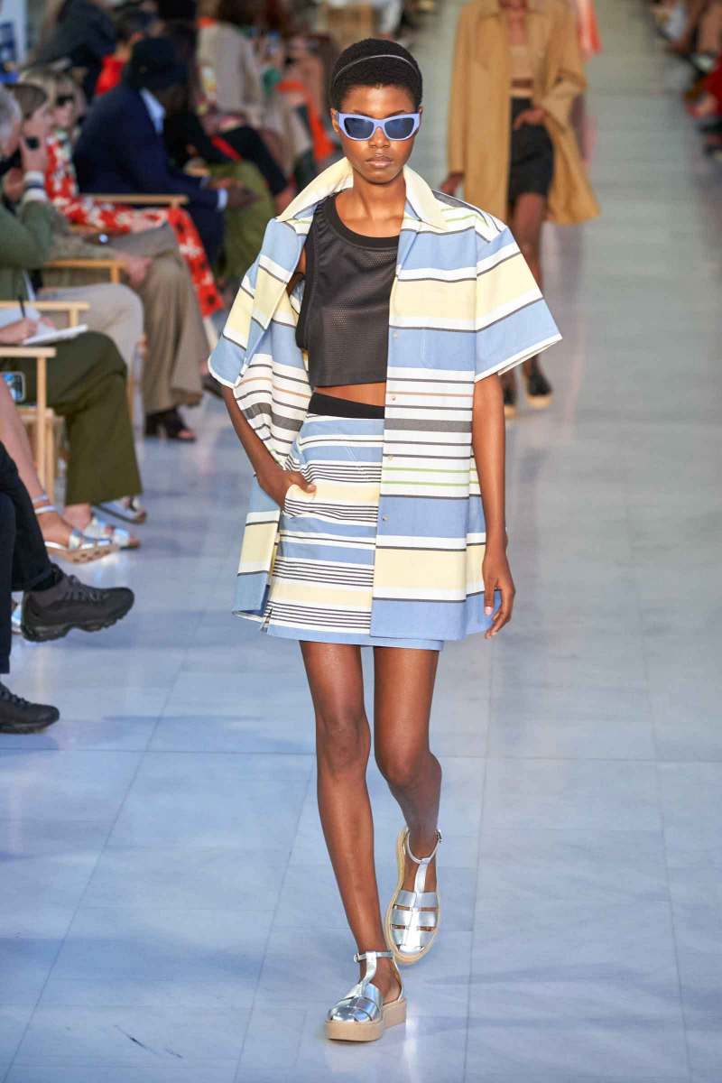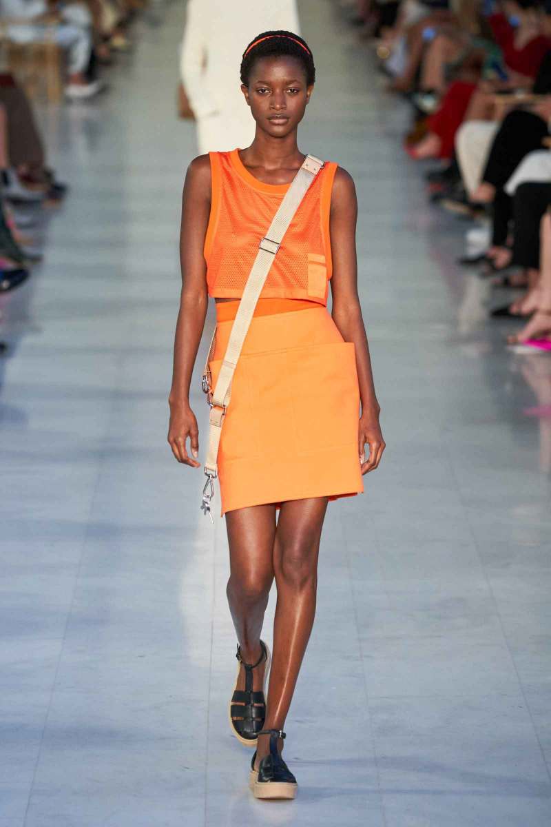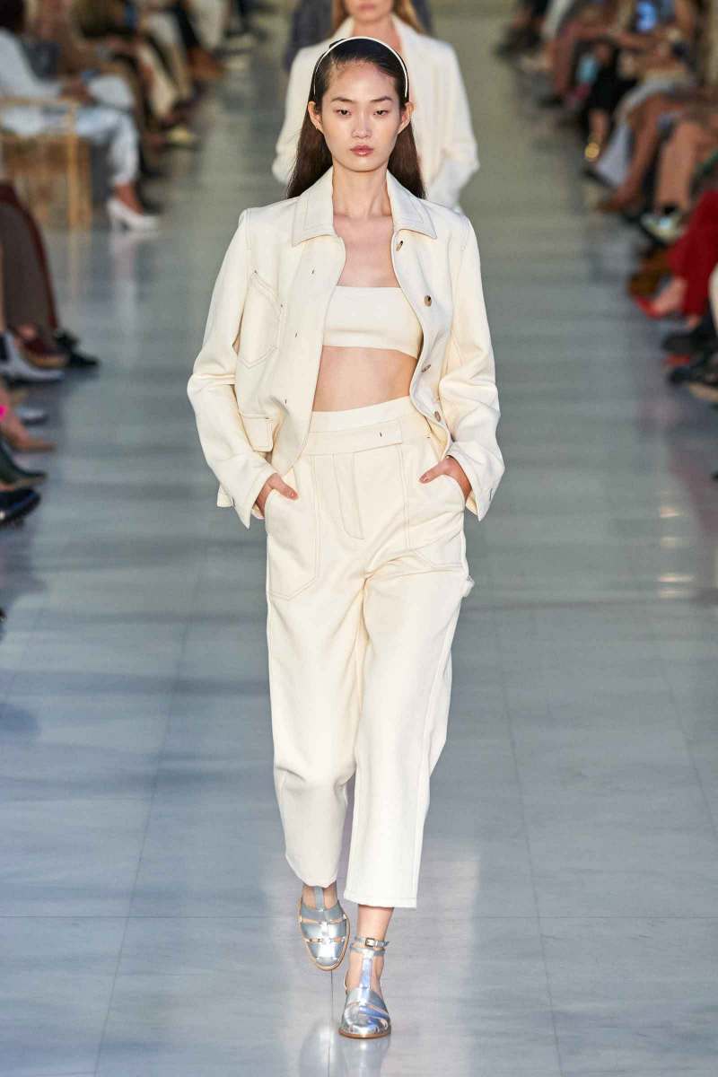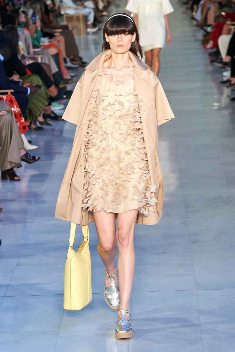Gli abiti della collezione, perfetti per una donna moderna e dinamica, sono pratici e confortevoli ma allo stesso tempo sofisticati ed eleganti. Tra gli outfit spiccano mini dress, canotte, gonne, pantaloni e capispalla abbinati. Immancabile è l’iconico cappotto double-face e la giacca workwear da indossare con disinvoltura su un top o una canotta. I colori che predominano sono il beige, il nero, il marrone e il bianco. Alcuni capi sono total orange, nuance utilizzata insieme al giallo anche per diversi dettagli della collezione. Scarpe e sandali con suole chunky e comode borse capienti completano il look della donna che vuole essere comoda e appropriata in ogni circostanza.