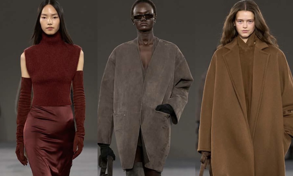 La proposta autunno-inverno si distingue per la qualità delle lavorazioni e per una ricerca materica che privilegia fibre nobili come cashmere, alpaca, suede e seta. Le silhouette sono morbide e scivolate, pensate per accompagnare il movimento del corpo con naturalezza. La palette cromatica si sviluppa attorno ai toni iconici della Maison — dal camel al beige, fino al cioccolato e al taupe — rafforzando l’idea di un guardaroba sofisticato ma versatile.