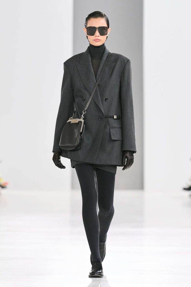 Una donna moderna, evocativa, sobria ma sensuale. La donna deve splendere ma soprattutto deve piacere a se stessa. Il look che apre la sfilata è composto da un elegante cappotto blu notte, da cui si intravedono degli shorts abbinati a collant. Il tutto viene abbinato a una maglia in cashmere, un bustier in lana, una micro cintura e delle francesine.