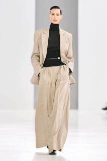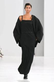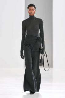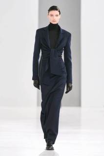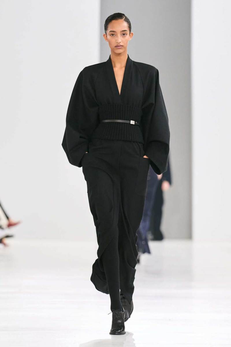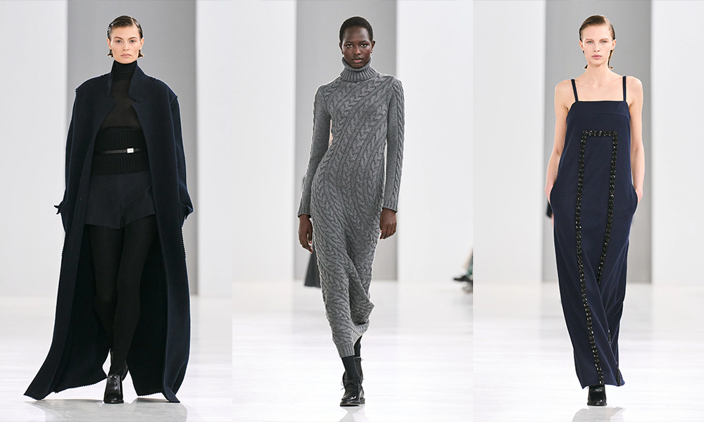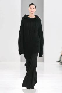 Tra i protagonisti assoluti del défilé spiccano sicuramente i cappotti in lana, in cashmere, lavorati a maglia; il nodo, che in questo caso sostituisce la cintura in vita; il color blu notte, impreziosito talvolta da cristalli brillanti; le jumpsuit morbide e gli abiti tunica. Tutti look minimal ma comunque ricercati e originali.