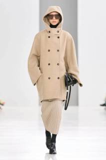 Così viene immaginata la donna di Max Mara. Una donna che fa riferimento alla figura della scrittrice francese di fine Ottocento, Colette, la quale ha portato innovazione e grandi novità nella sua epoca. Riprendendo la sua personalità, il suo lavoro e il suo immaginario, si portano in scena capi glamour e femminili, che presentano però anche qualche tocco androgino che rimanda l’idea di donna emancipata. I capi più maschili sono i coat da ufficiale e i caban.
