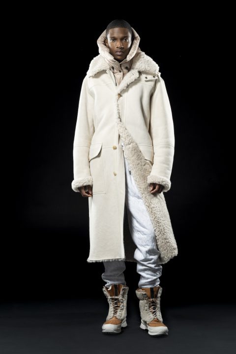 La collezione Heritage presenta alcuni pezzi degni di nota che rivelano una rinnovata interpretazione del workwear, grazie alla creatività di Snyder. Tra questi, il Military Trench si distingue per la sua fodera in shearling e l’esterno in pelle bianco crema dall’aspetto morbido e sofisticato. Gli accessori in Quilted Down Hoods sono pensati per completare con stile i look invernali.