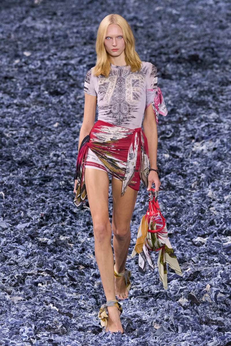 Vestiti corti con fili di strass, jeans strappati e varianti standard di colori, sembrano essere alla base della nuova idea di primavera/estate 2025 della maison italiana. Ovviamente, come complemento, non può mancare la classica 1DR amata dai giovani e dalle influencer del momento, che, dalla linea semplice ma contemporanea, si aggiudica un posto nella classifica delle borse più amate (e vendute) degli ultimi anni.