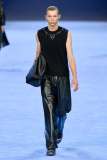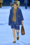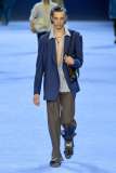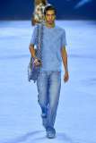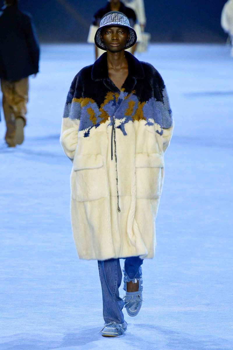 Queste le parole della designer che racchiudono il concetto delle sue creazioni, due capi basici, immancabili in qualsiasi guardaroba, come la camicia e il jeans, diventano appunto la base da cui nasce il nuovo uomo Fendi. La camicia diventa sostituta della formale giacca e della informale t-shirt, satinata con il pattern di stagione FF, stampata in un tie-dye ispirato al manto della mucca, dall’aspetto inamidato grazie alle termosaldature che sostituiscono le vecchie cuciture. Anche i pantaloni abbinati ingannano nella loro consistenza sembrando cotone, ma essendo di una leggerissima nappa.