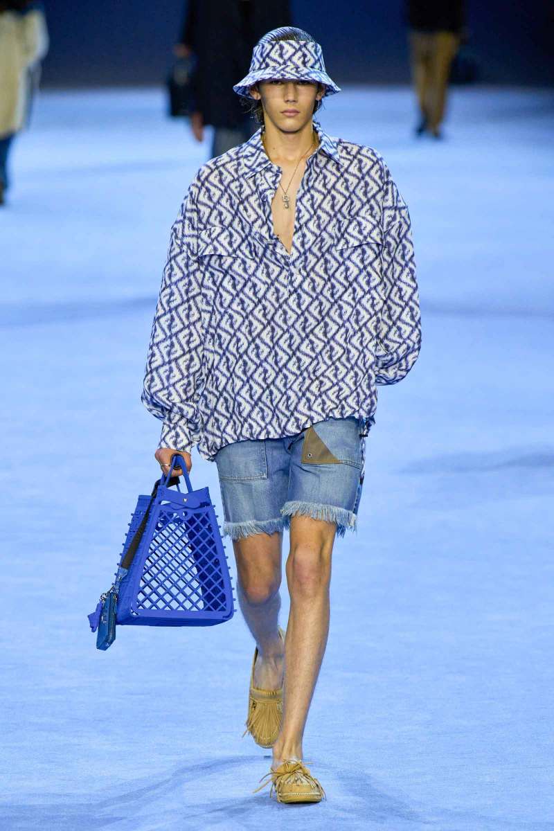 Il colletto tipico della camicia si posa su tutte le giacche, dando vita a nuove sahariane dal sapore esotico, accentuato dalle frange che si trovano sugli shorts in jeans a taglio vivo, sulle scarpe come i mocassini e le borse, tra le quali nuovi modelli Baguette, Peekaboo e anche Tote bag dove mettere l’indispensabile e più! Il logo si fa pattern su nuovi modelli di borse a secchiello e chunky slide dalla lavorazione 3D. Tra gli accessori anche cappelli, dal più classico a cuffia all’originale bucket hat cha lascia scoperta la testa.