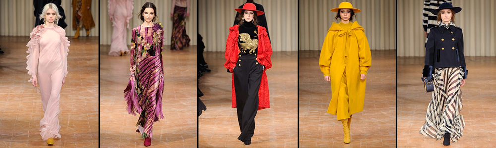 Alla 71esima Biennale di Venezia, Alberta Ferretti aveva già espresso il suo amore per la città lagunare, creando un video con tutte le celebrities che avevano sfilato sul red carpet del Festival con le sue creazioni. Nuovamente Venezia viene riproposta durante la sfilata per la moda donna del prossimo inverno: il leone dorato, i colletti alla marinara e le tipiche maschere del Carnevale.
