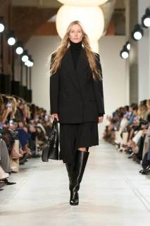 La collezione nasce dall’idea di un guardaroba senza tempo, in cui ogni capo può essere indossato subito, senza aspettare il cambio di stagione. Michael Kors propone tessuti morbidi e silhouette fluide, puntando su tonalità neutre come caramello, verde bottiglia e nuance che ricordano i confetti di mandorla, alternative sofisticate al nero. Il risultato è un’estetica che unisce il lusso discreto del quiet luxury all’anima pratica e dinamica della moda americana.