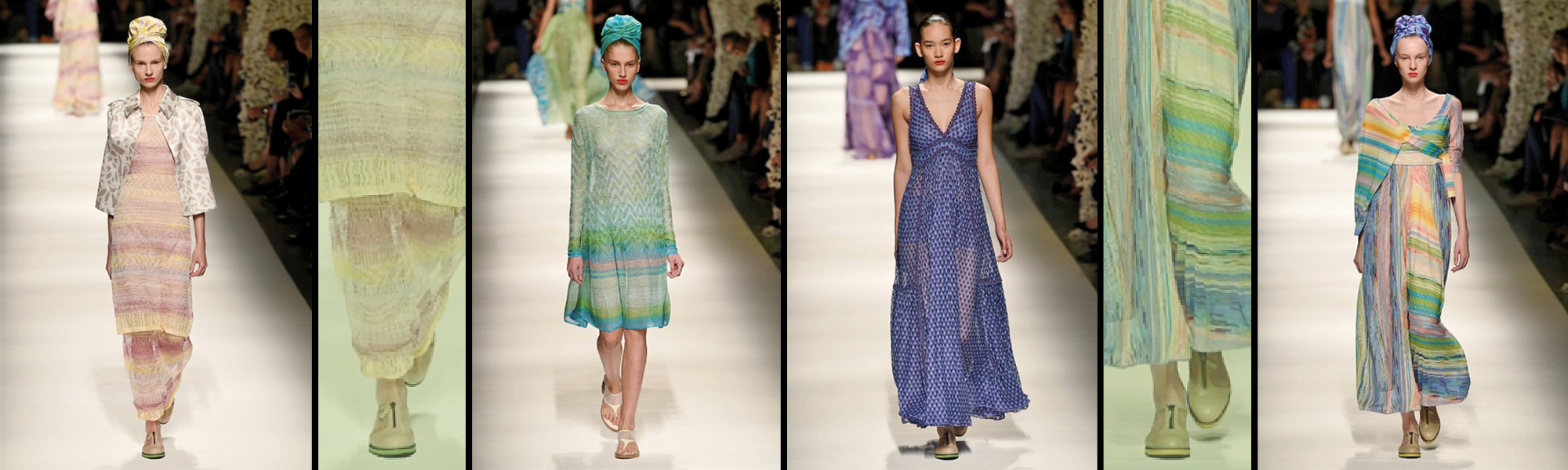 I volumi fluidi, che scivolano sul corpo della donna, e le lunghezze dei capi, che raramente arrivano sopra il ginocchio, lasciano trapelare una sensualità velata ma ricercata. La donna di Missoni è elegante e raffinata come si evince dalla scelta degli accessori ripresi dall’affascinante cultura orientale, tra i quali il turbante è quello che rappresenta meglio queste caratteristiche.