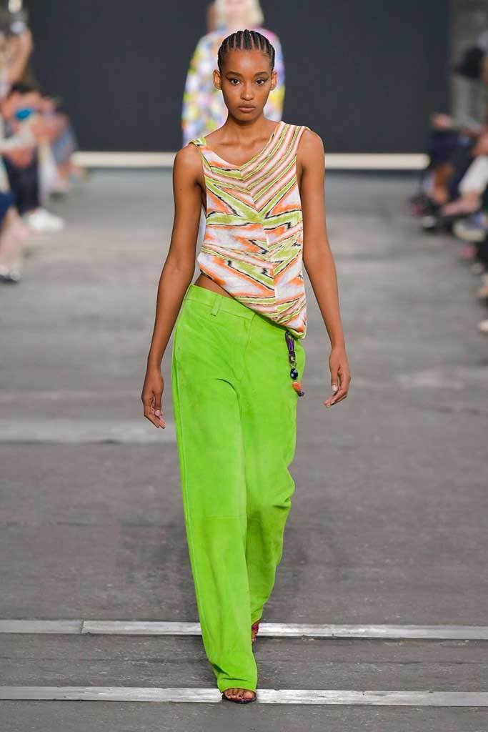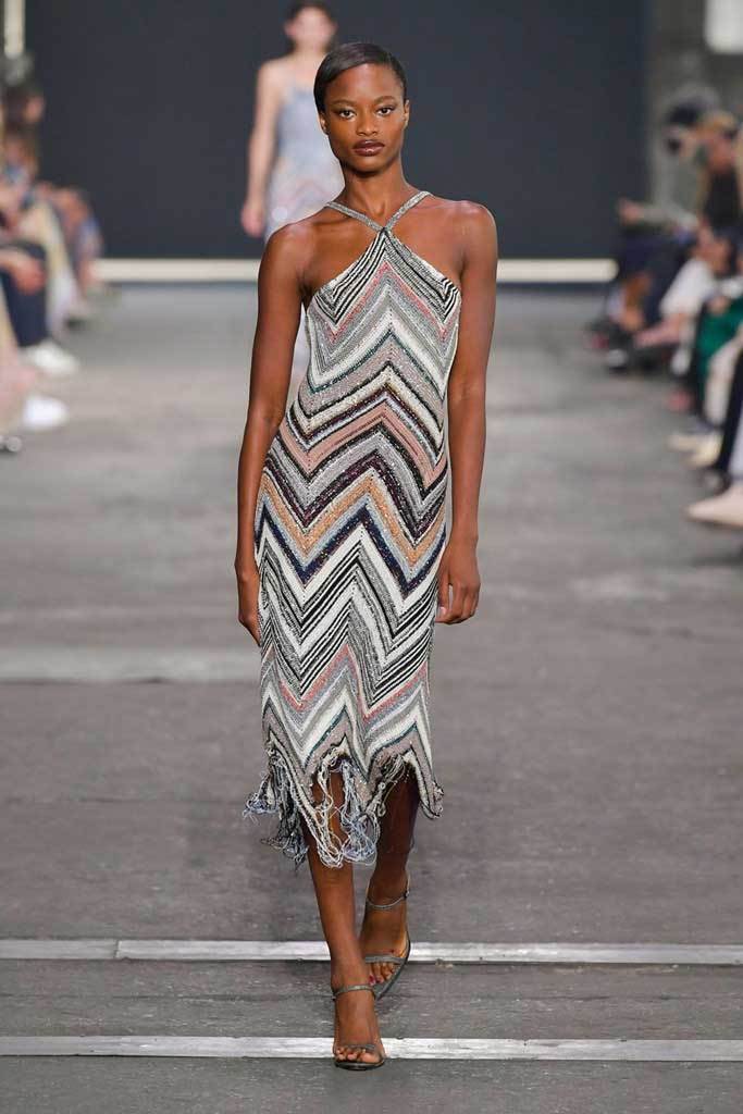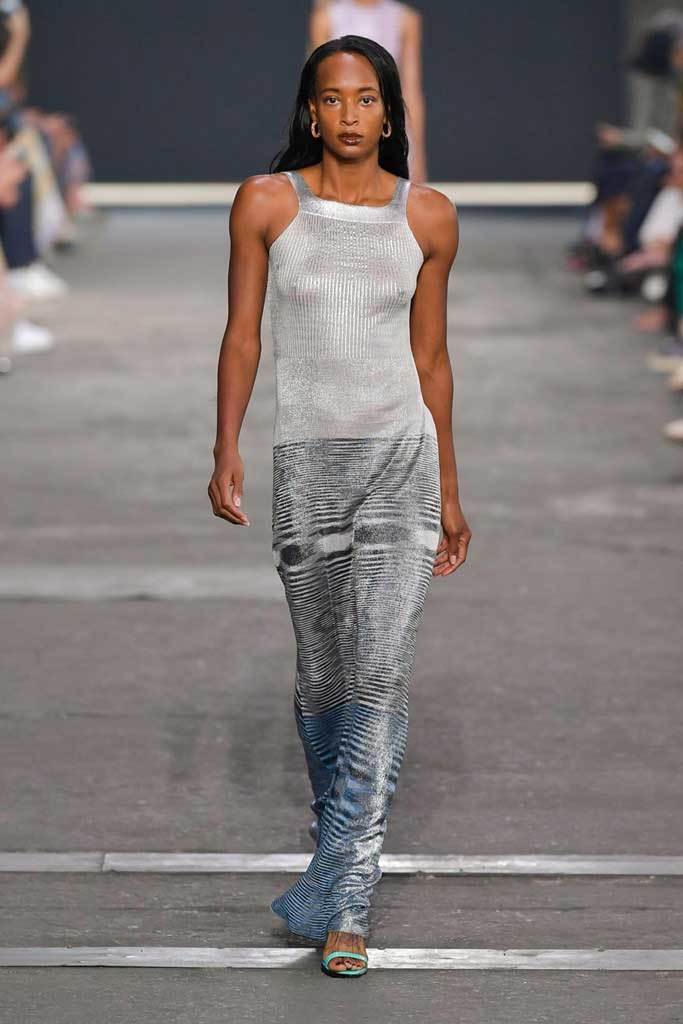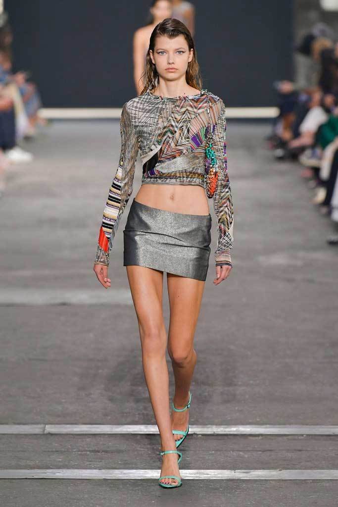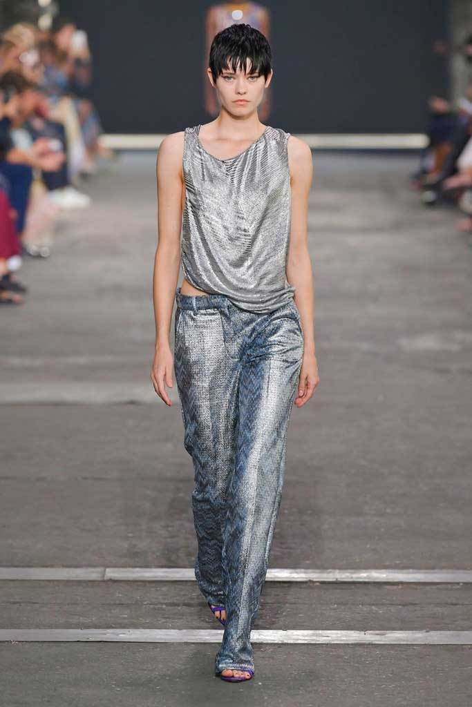 È tutto un gioco di trasparenze, colori, mix di capi prettamente maschili che sulla donna acquistano un sapore accattivante, bold, sicuro. I bikini, i lunghi trench, i crop top, gli abiti disco sono la rivoluzione silenziosa che Alberto Caliri apporta al mondo Missoni con l’eclettismo di chi sogna un nuovo mondo con lo sguardo volto al glorioso passato.