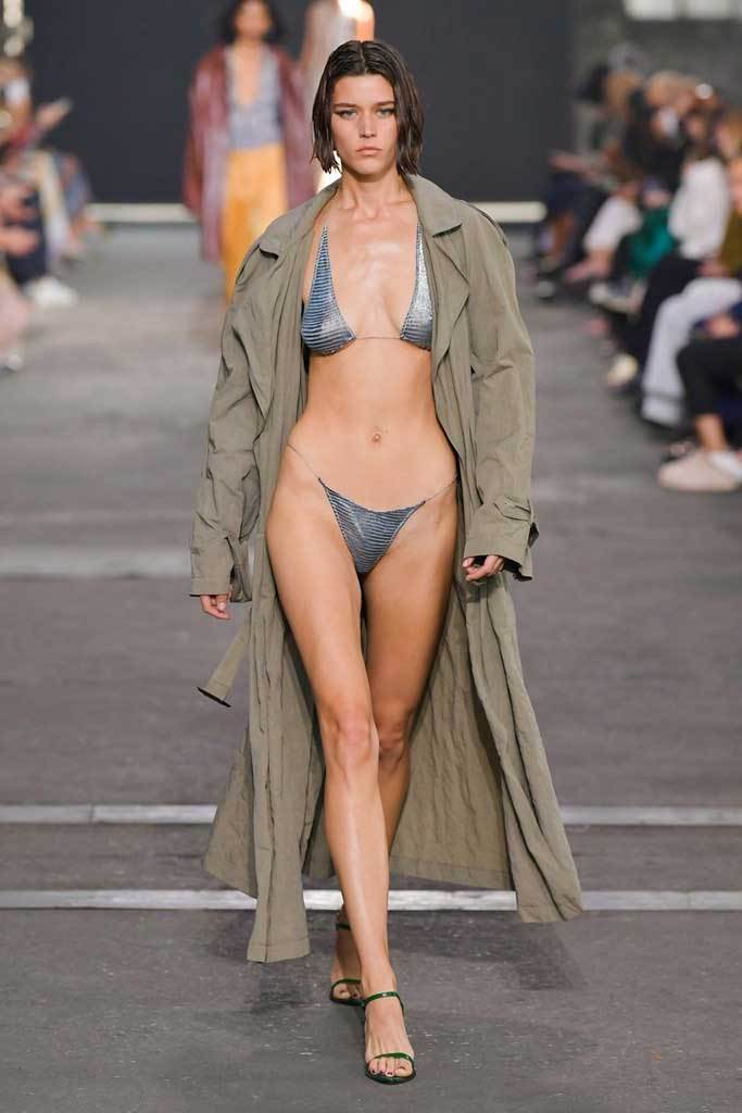 Gli scolli vertiginosi, sia davanti che dietro, i bikini indossati sotto il trench, le trasparenze proposte da Caliri non sono che un seguito della rivoluzione partita più di sessant’anni fa da due visionari. Un tributo alla storia di un brand che vuole rinascere e rispolverarsi mantenendo saldi quegli ideali e quei segni che lo hanno distinto nel tempo, adattandoli alle mode che cambiano e alla libertà della donna che anno dopo anno conquista l’indipendenza di potersi mostrare al mondo come vuole.