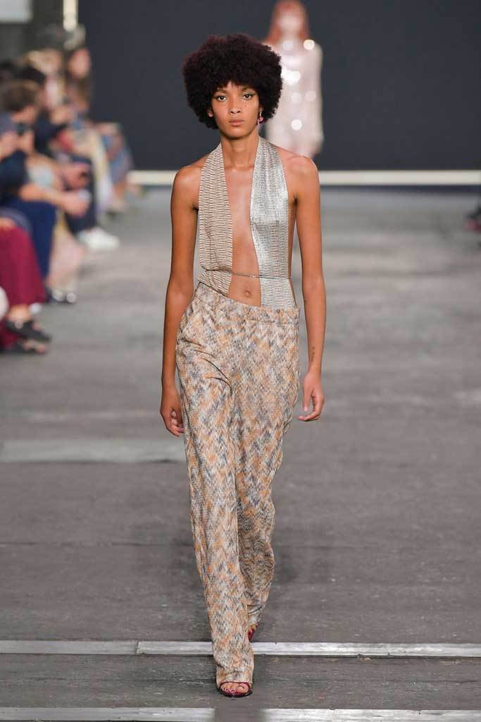 Benché le forme, i tessuti e le fantasie potrebbero sembrare innovative, la SS22 di Missoni non stupisce il pubblico in fatto di sensualità. A scioccare le folle con il nude look, infatti, ci hanno pensato Rosita e Ottavio nel 1967, abituando l’occhio degli amanti del brand a un elogio totale del corpo della donna. Fu sulla passerella di Palazzo Pitti che il duo Missoni decise di far sfilare una delle modelle senza reggiseno, poiché non in tinta con l’outfit. L’uscita fu uno scandalo, ma l’anno dopo era già diventato un trend.