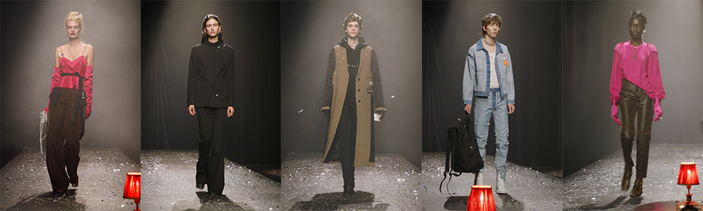 In un cabaret parigino degli anni Venti coriandoli argentati volano nell’aria, una ragazza agita la scritta “fine” nel backstage di una sfilata che deve ancora iniziare. Nel mondo che gira al contrario di Maison Margiela niente segue il filo della logica. Tra video in rewind e capi indossati al rovescio, le modelle sfilano in un club vuoto. Solo un pianista tiene loro compagnia, con una melodia il cui inizio e fine sono intrecciati e giocano a inseguirsi per tutto lo spettacolo. La casa di moda parigina opta per un ulteriore riferimento all’avant-garde francese degli anni ‘20. Il club intimo con qualche tavolino si ispira ai cabaret in cui scrittori, poeti e artisti si riunivano per intrattenersi e conversare.