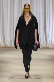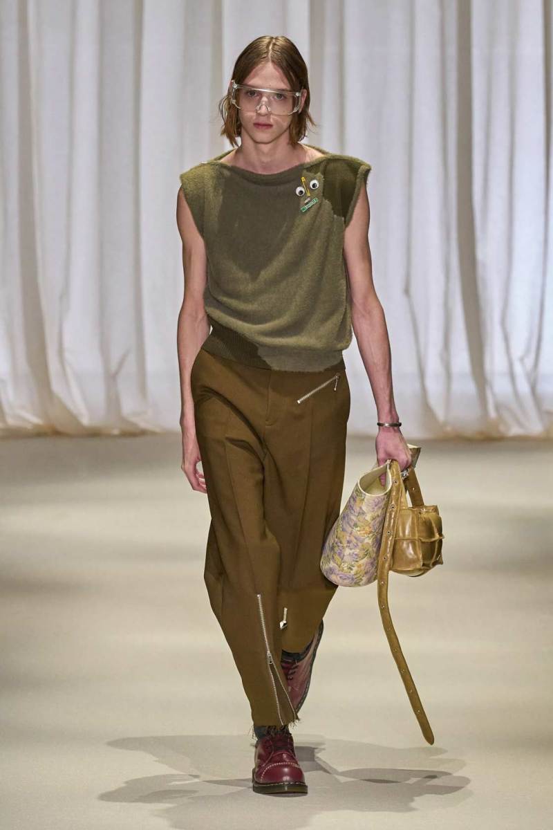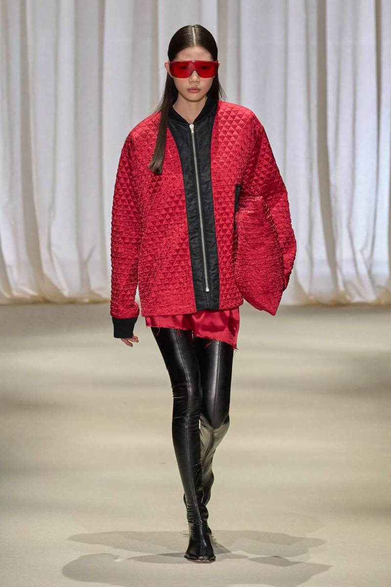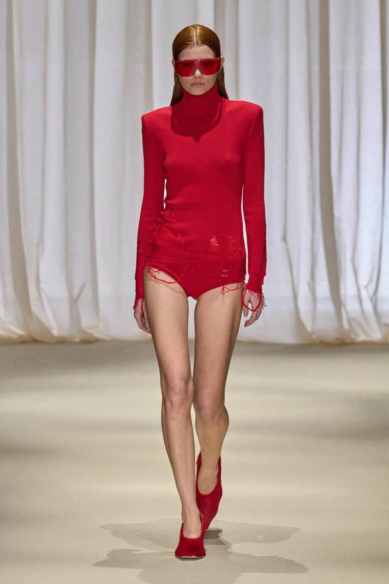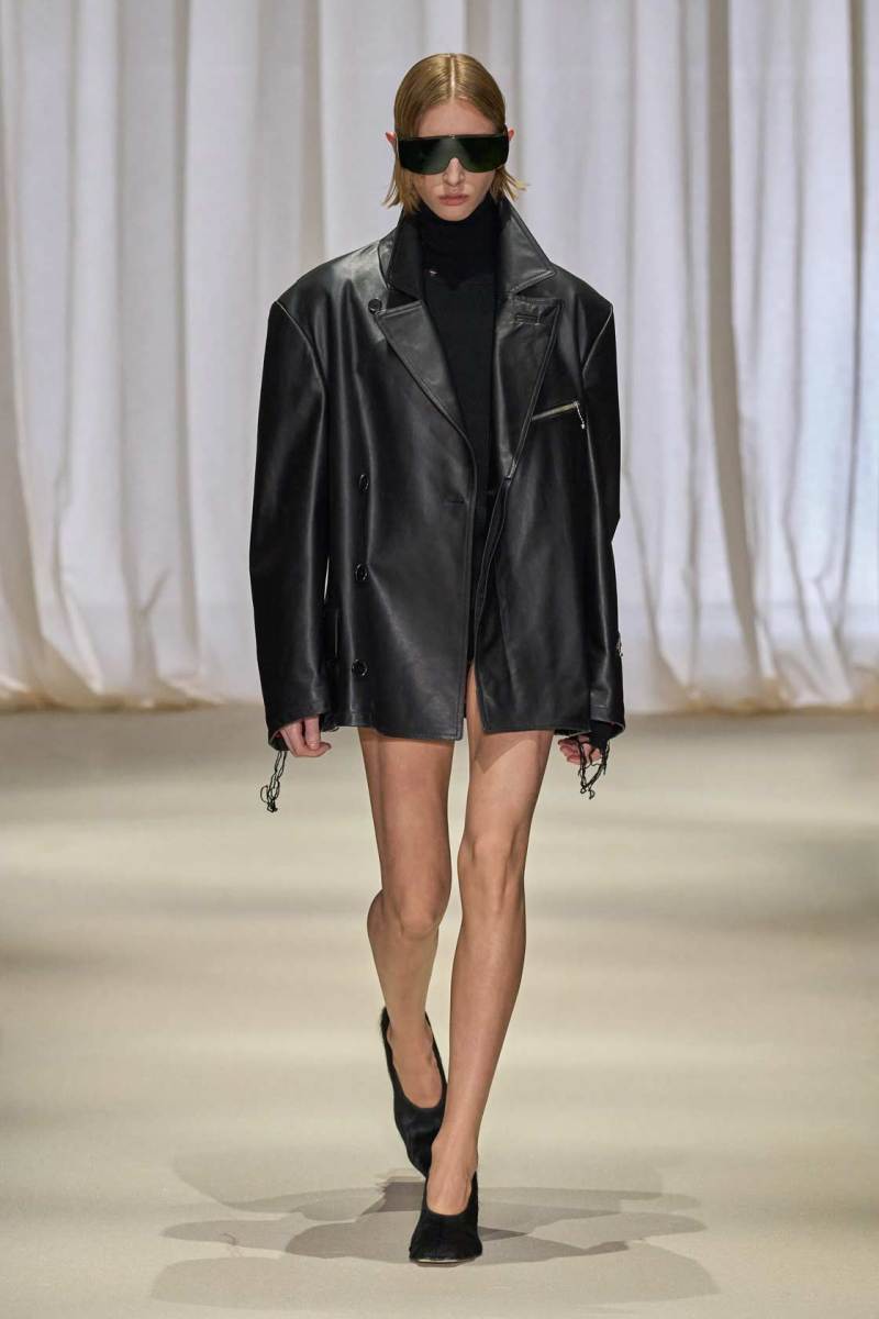 La collezione è ben riuscita. Vediamo riprendere dei cavalli di battaglia della Maison: borse origami, orli non rifiniti, maglie jacquard, maxi cappotti (hit 2024 e sicuro anche 2025) e scuba-boots cuissardes. Vediamo tantissima pelle e spalline imbottite anni ’80, pillow bags, spille da balia colorate, e il trench di pelle lungo fino ai piedi non ci abbandonerà nemmeno questa stagione. La palette di colori varia dai più chiari al total black mantenendo in equilibrio su quella dicotomia tra il futuristico e il canonico, il passato e il futuro. Ci hanno sorpreso vivaci tonalità viola e gialle su dolcevita aderenti, che sono diventati i pilastri per completi eccentrici abbinati a soprabiti sofisticati e denim strappato che ha fatto da padrone per questa collezione. Vediamo ancora giacche con colletto, stivali alti fino alla coscia (sexy) e il gilet un po’ combat che se abbinato a occhiali da sole “veloci” è perfetto per un evento techno o un rave. In tutto questo, noi stiamo fremendo per la prossima uscita della collaborazione del marchio streetwear Supreme, in programma a breve.